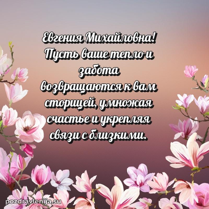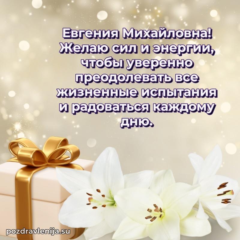 На нашем сайте вы найдете огромное количество красивых и оригинальных поздравлений Евгении Михайловне с Днем Рождения, которые подойдут для любых ситуаций. Мы собрали для вас лучшие пожелания как в стихах, так и в прозе своими словами — каждый сможет подобрать тот вариант, который наиболее близок по духу и настроению.