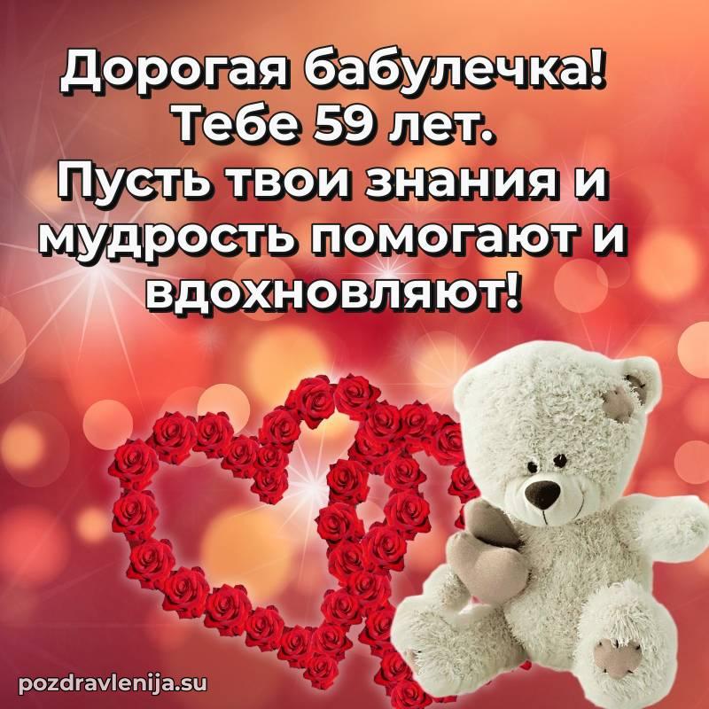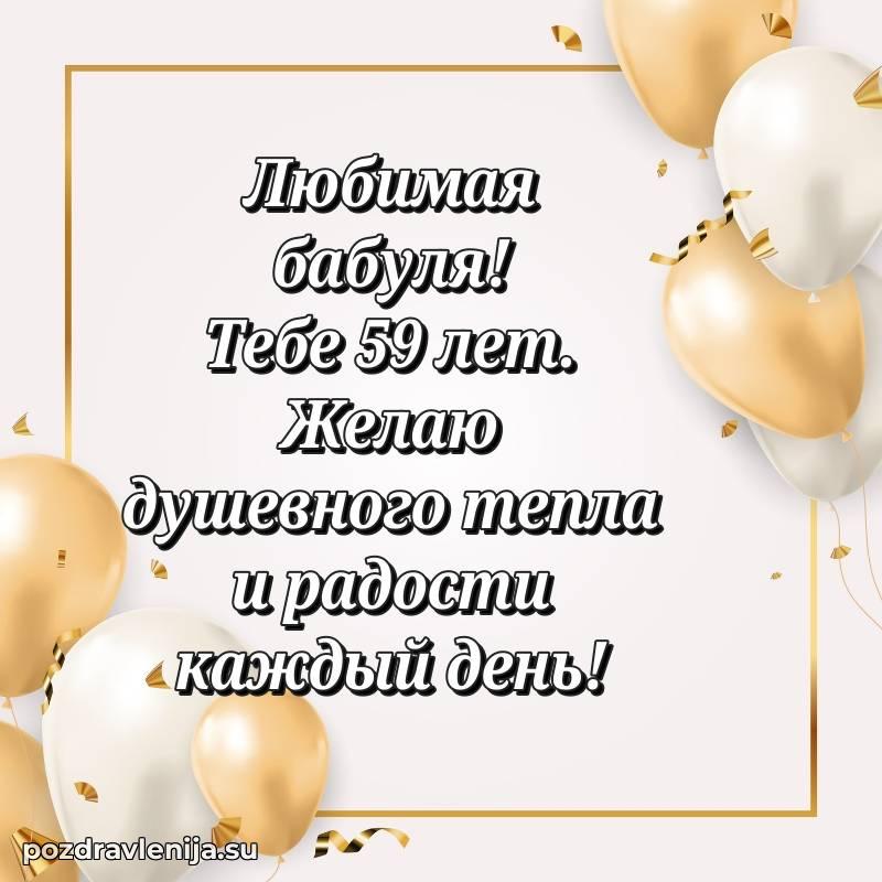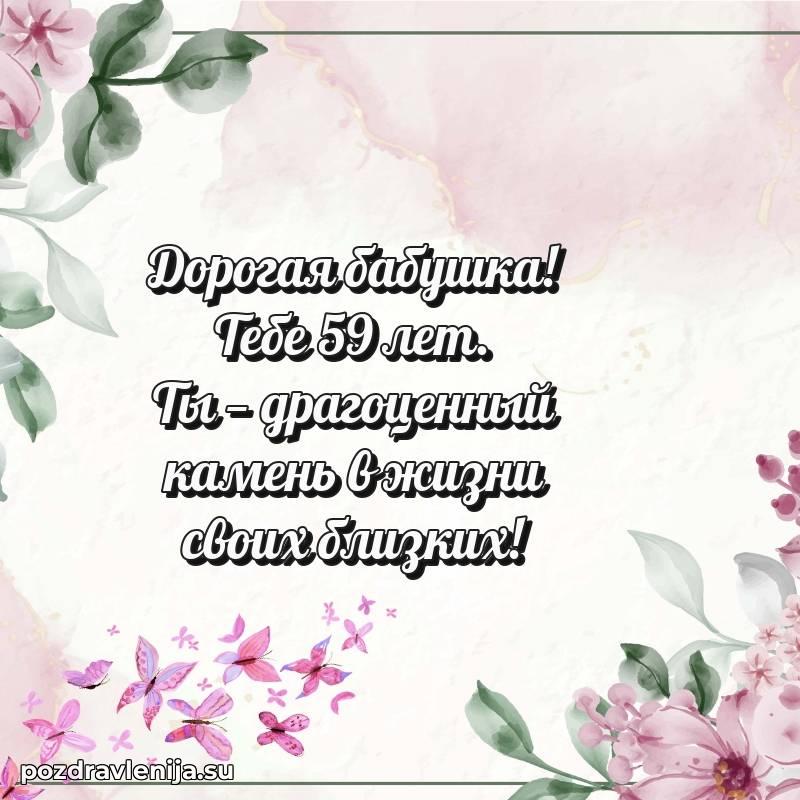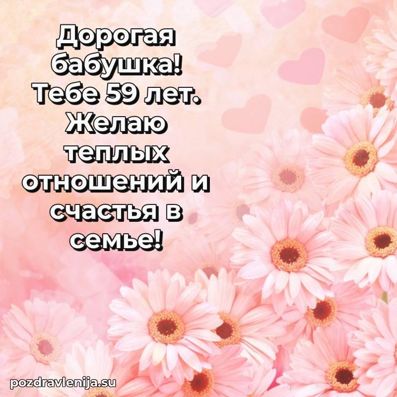 У нас вы найдете широкий выбор красивых и оригинальных поздравлений Бабушке на 59 лет с Днем Рождения, составленных с душой и вниманием к деталям. В данном разделе представлены поздравления как в стихах, способные вызвать улыбку и радость, так и трогательные поздравления в прозе, исполненные своими словами.