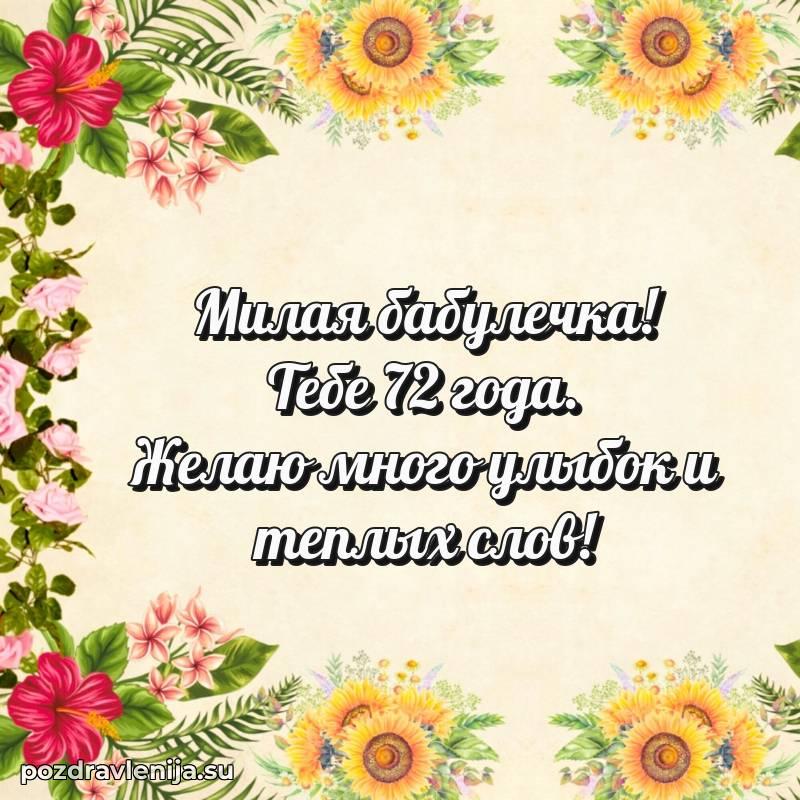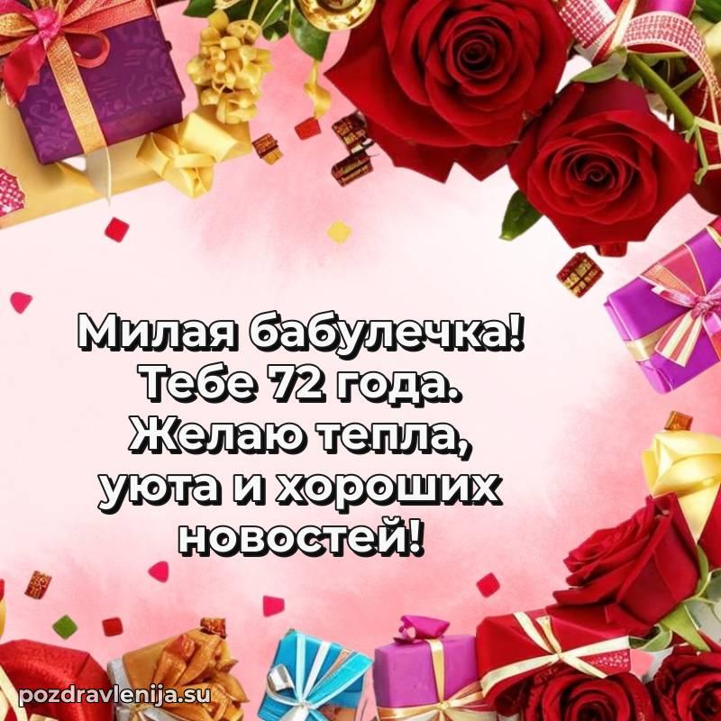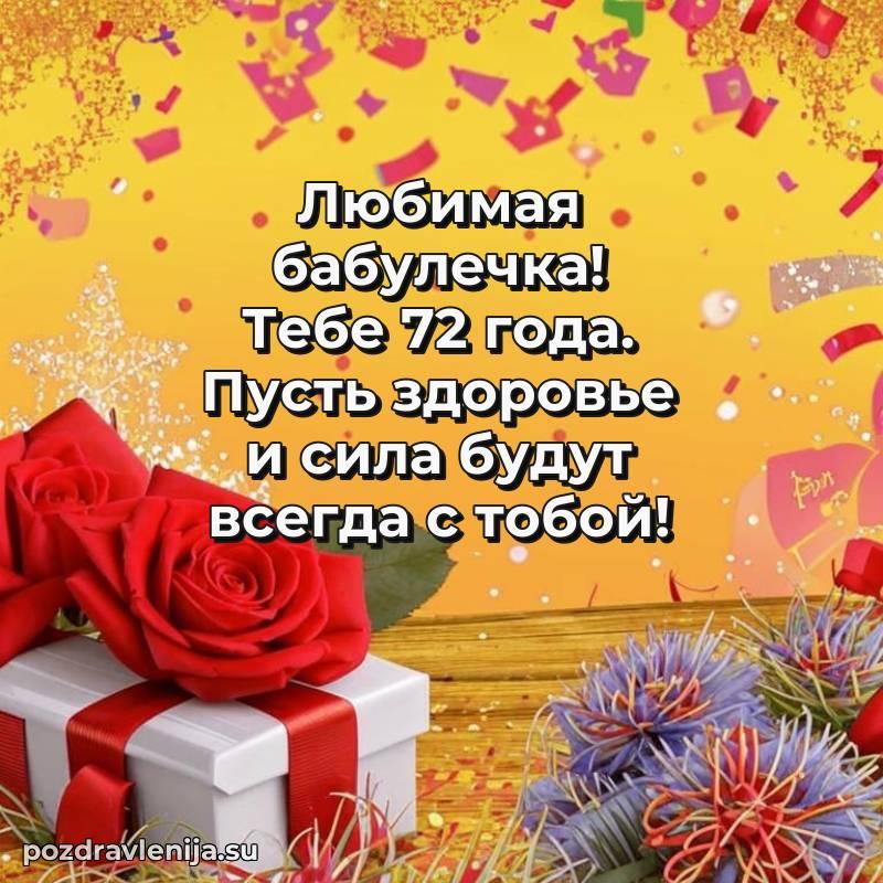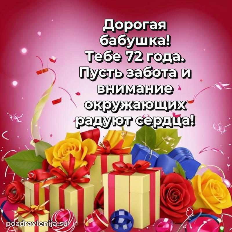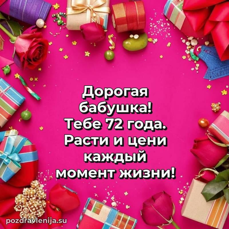 Поздравляю тебя, 72 года, с этим замечательным днем! Пусть каждый момент жизни будет наполнен радостью.