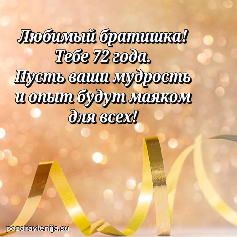С днем рождения, тебе 72 года тебя! Пусть этот возраст подарит тебе мудрость, спокойствие и множество счастливых дней, наполненных любовью и поддержкой.