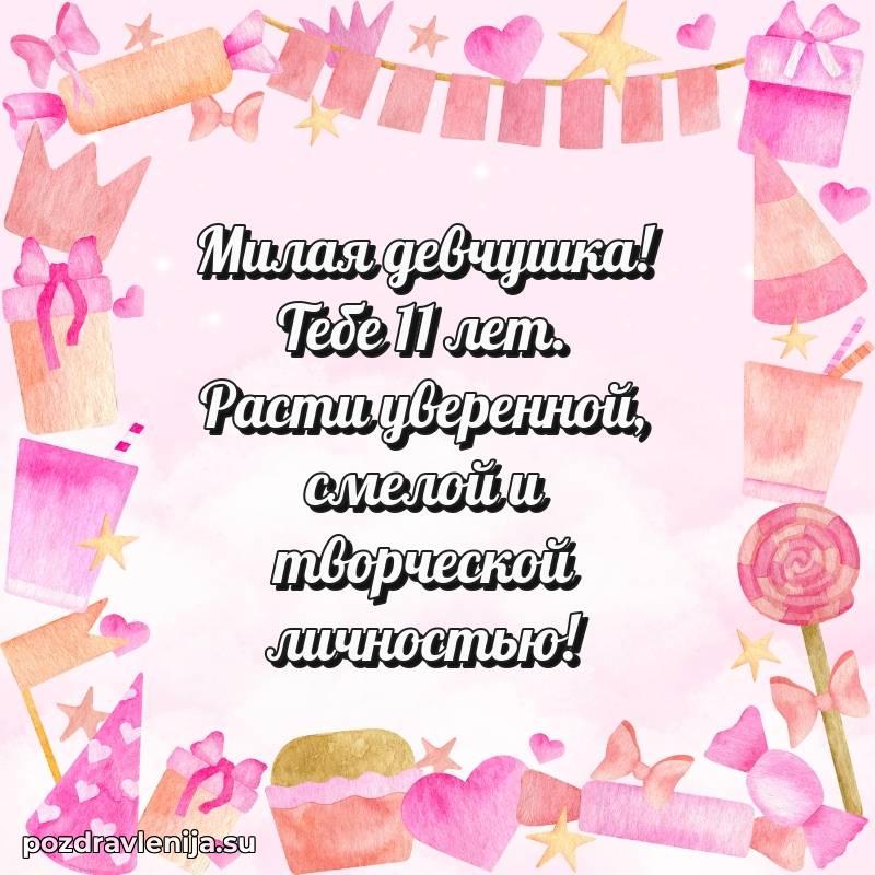 С праздником! Желаю, чтобы счастливый 11 лет подарил тебе много интересных открытий, радостных моментов и исполнение самых заветных желаний.