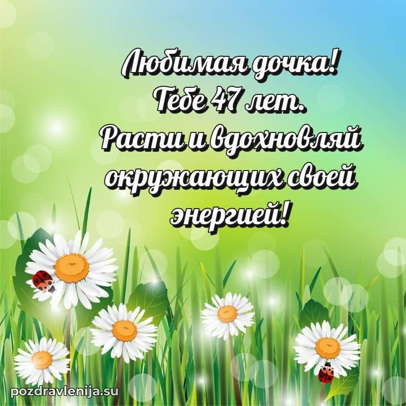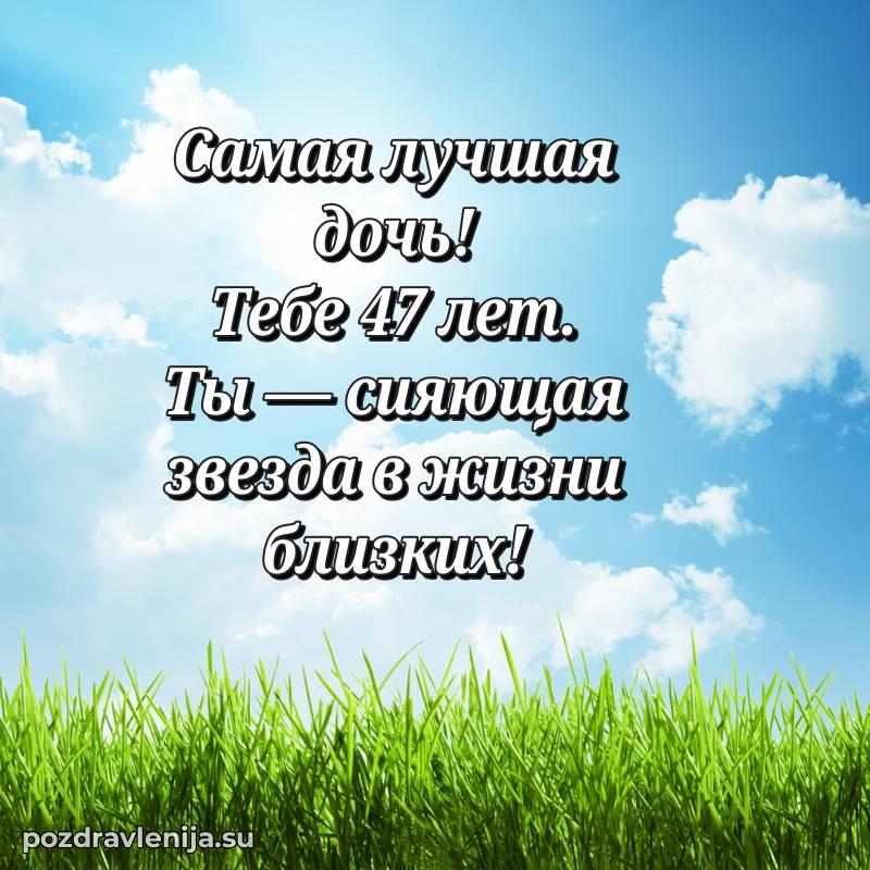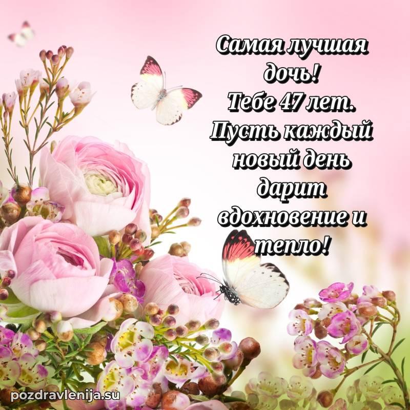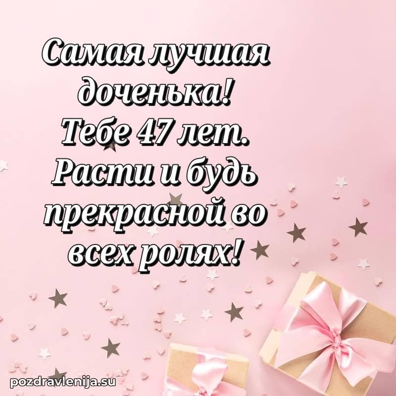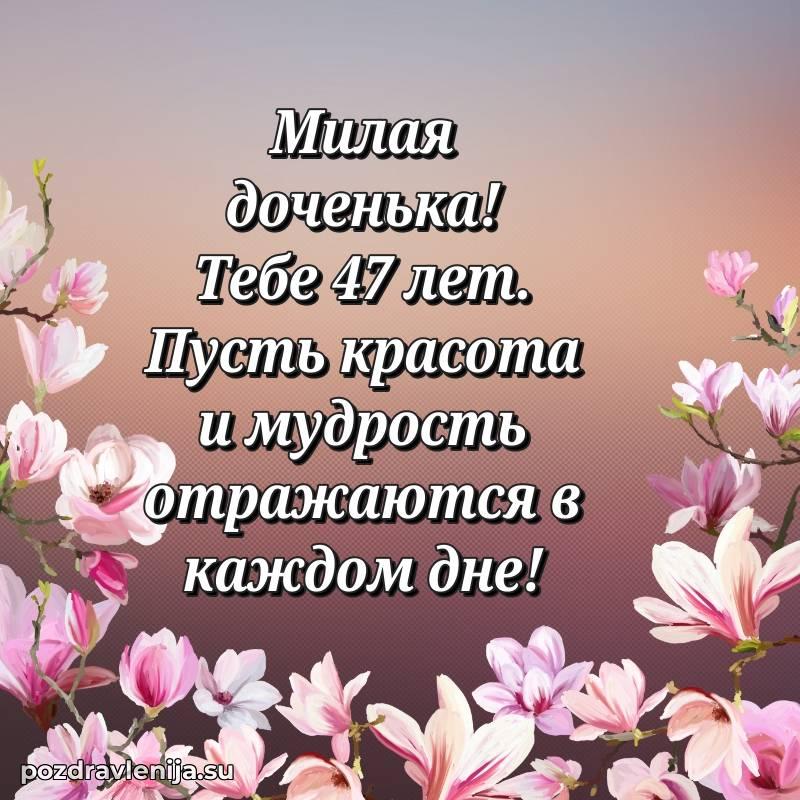 Поздравляю тебя с 47 лет и желаю, чтобы твоя жизнь была наполнена яркими событиями, верными друзьями и взаимной любовью. Пусть мечты сбываются одна за другой.