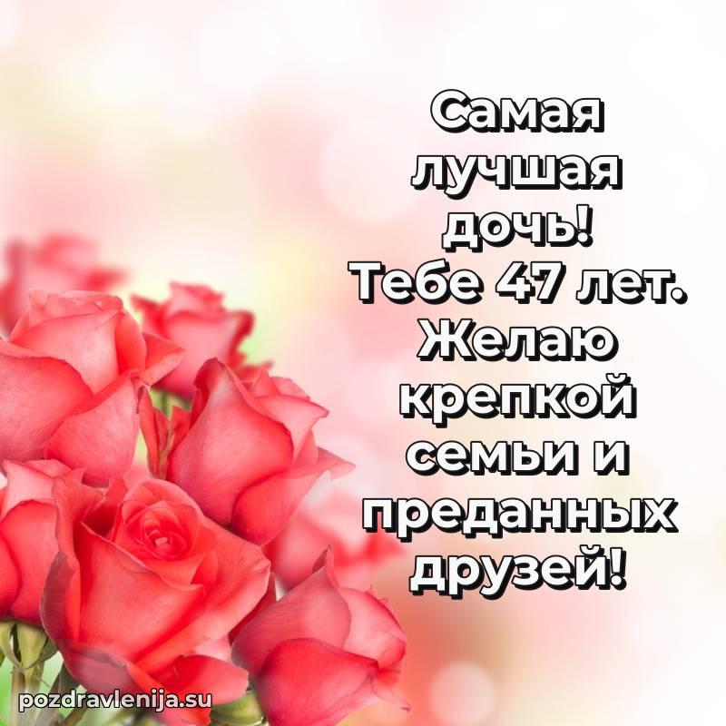 Поздравляю с 47 лет, время новых свершений и радостных перемен! Пусть сердце наполнится силой, а жизнь — яркими впечатлениями.