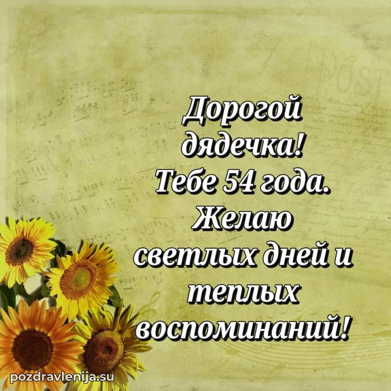Дядя, поздравляю от души! Пусть твои дни будут светлыми и тёплыми, здоровье — крепким, а счастье — бесконечным. Ты — наш лучший дядя!