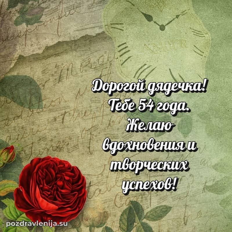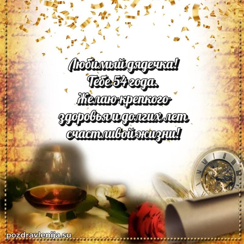 У нас вы найдете широкий выбор красивых и оригинальных поздравлений Дяде на 54 года с Днем Рождения, составленных с душой и вниманием к деталям. В данном разделе представлены поздравления как в стихах, способные вызвать улыбку и радость, так и трогательные поздравления в прозе, исполненные своими словами.