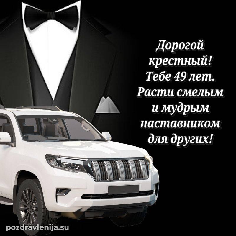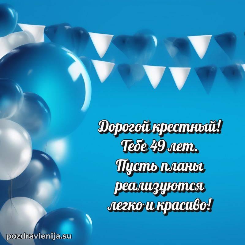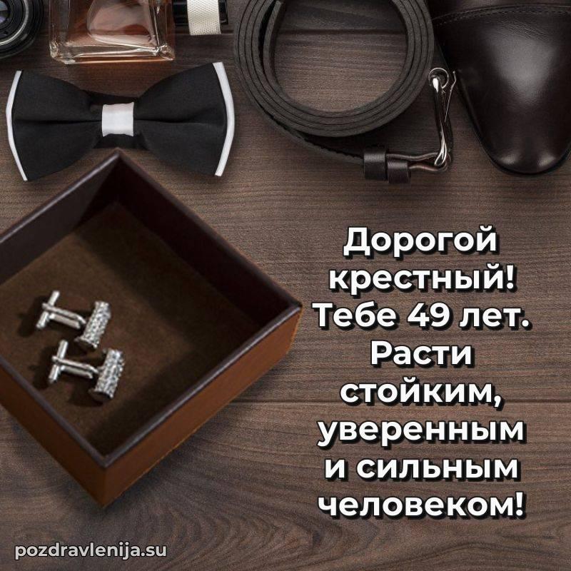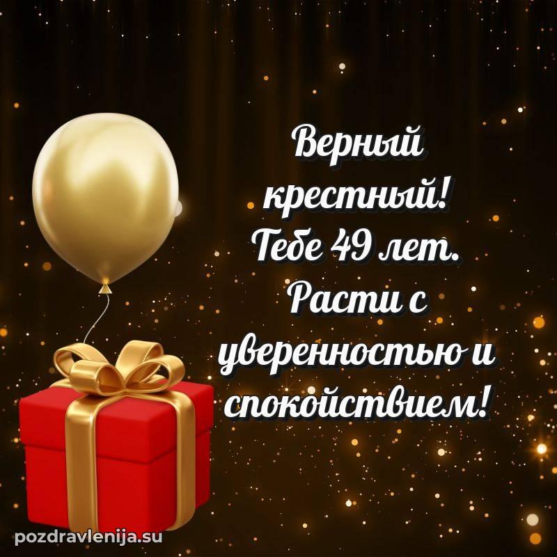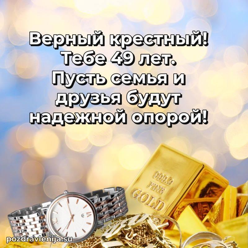 Дорогой крёстный, с днём рождения! В Ваши 49 лет Вы – наша опора и поддержка. Желаем Вам крепкого здоровья, радости в каждом мгновении и чтобы жизнь приносила только приятные сюрпризы. Пусть всё будет так, как Вы мечтаете!