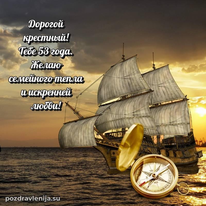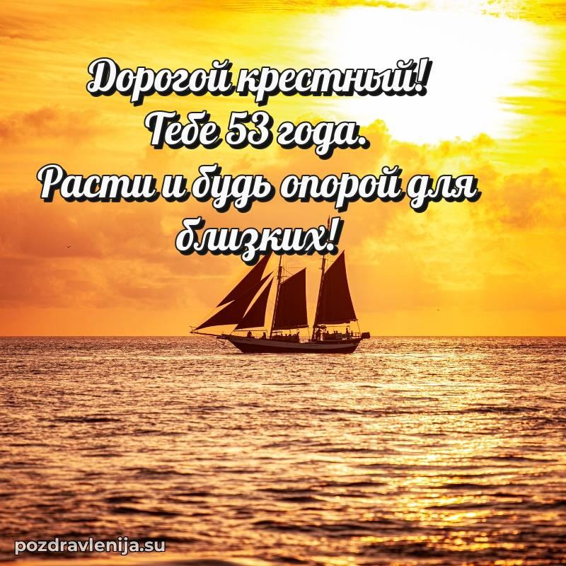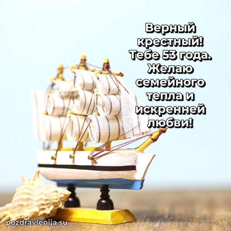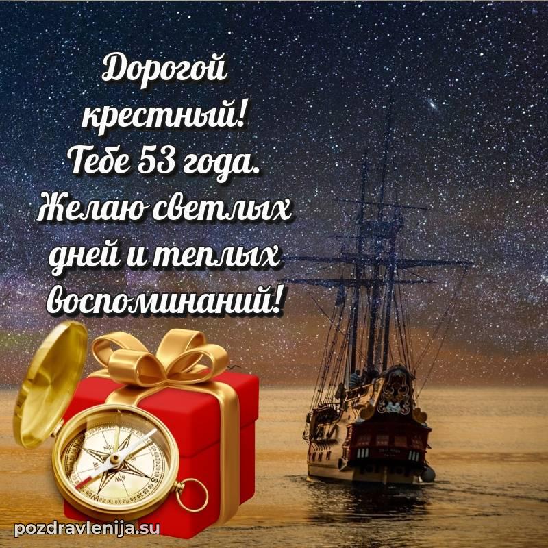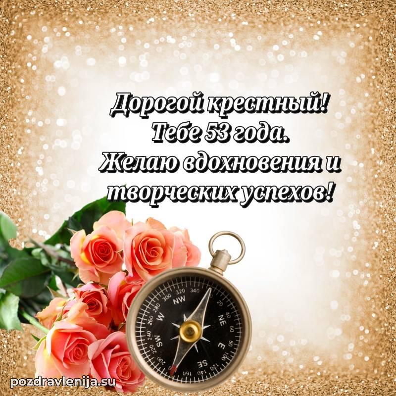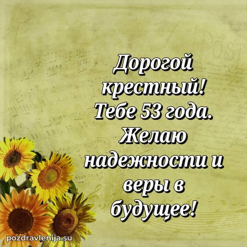 Крёстный, с праздником Вас! В Ваши 53 года Вы сияете ярче всех. Желаем Вам крепкого здоровья, радости в сердце и чтобы жизнь была наполнена теплом близких. Спасибо за Вашу доброту!