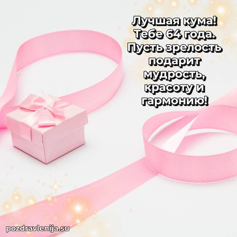 Кума, поздравляю с днем рождения! Желаю тебе крепкого здоровья, удачи в делах и море положительных эмоций. Пусть семья будет твоей опорой, а жизнь — полной радости. Пусть 64 года принесут счастье!