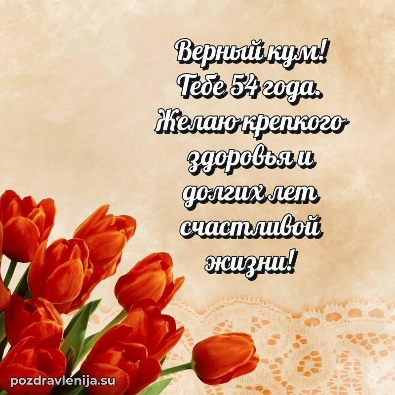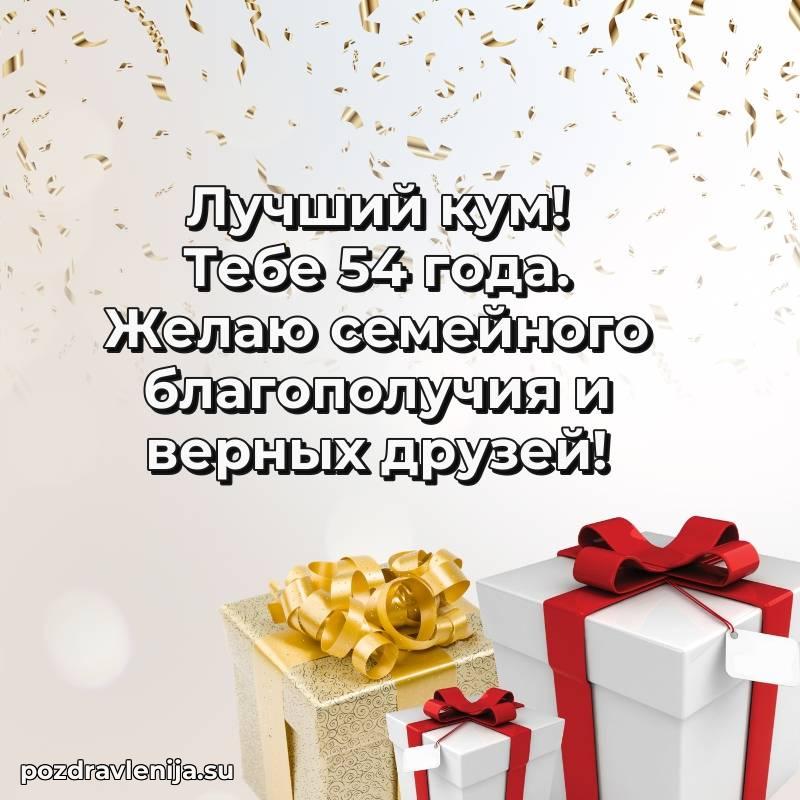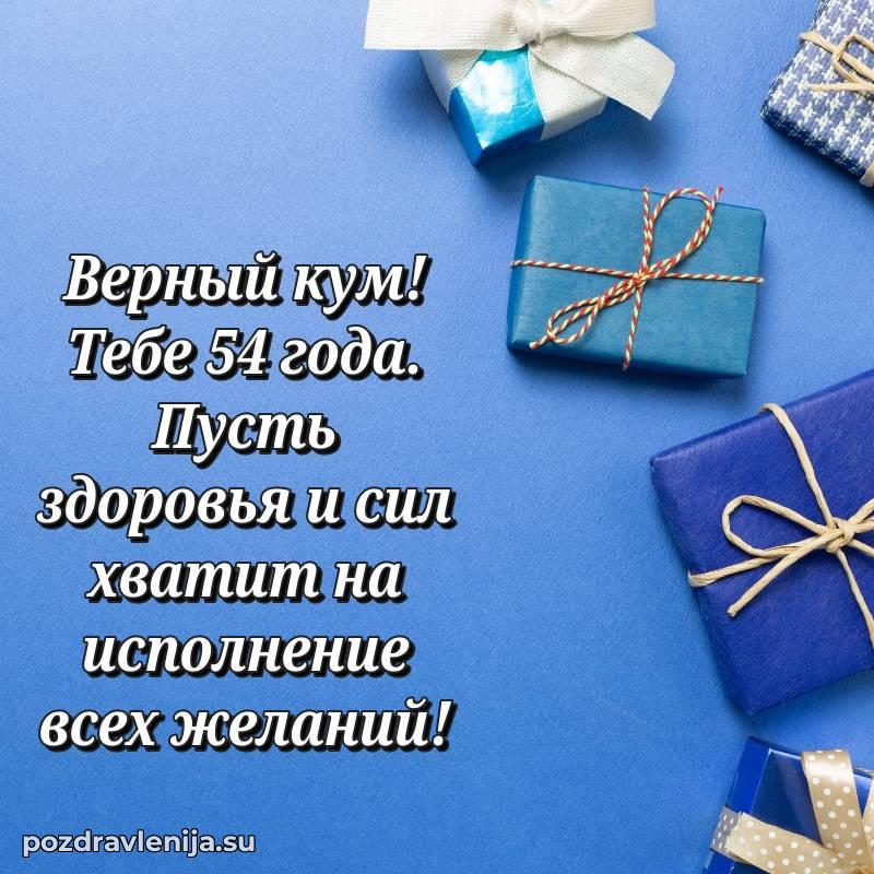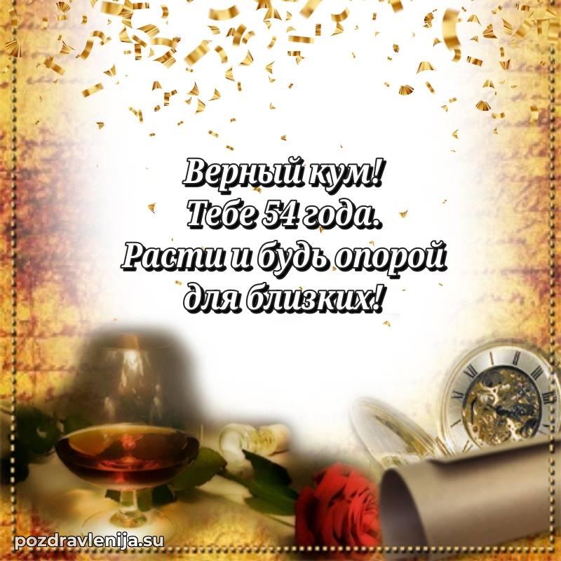 У нас вы найдете широкий выбор красивых и оригинальных поздравлений Куму на 54 года с Днем Рождения, составленных с душой и вниманием к деталям. В данном разделе представлены поздравления как в стихах, способные вызвать улыбку и радость, так и трогательные поздравления в прозе, исполненные своими словами.