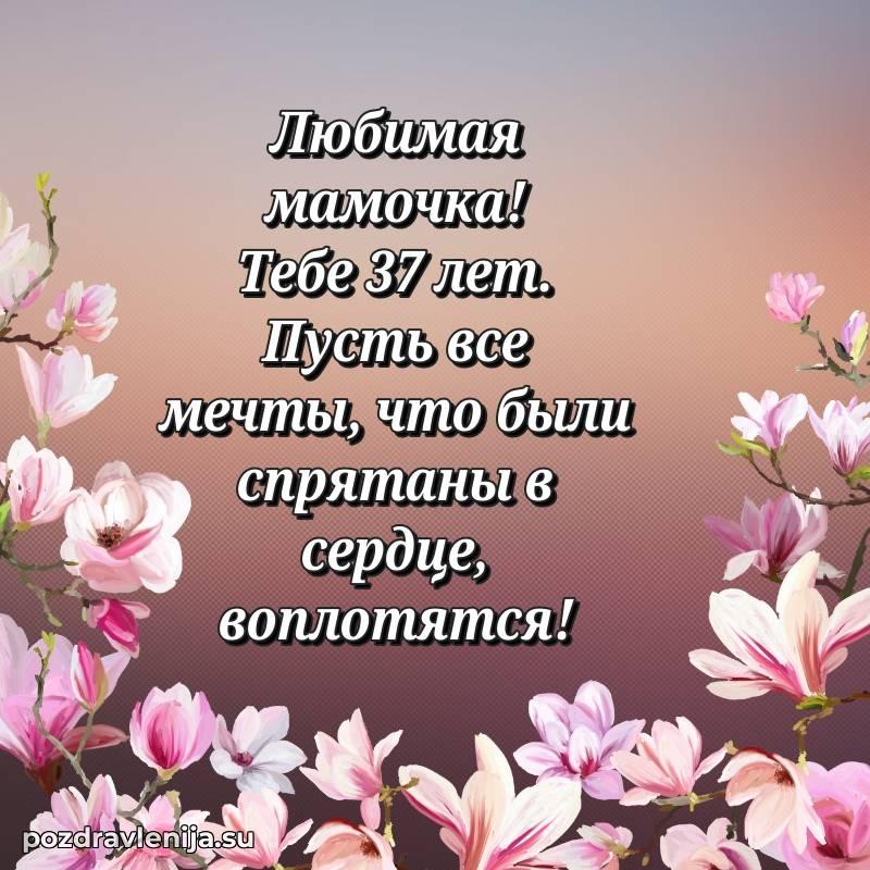 Мамочка, 37 лет, пусть в твоей жизни будет гармония, счастье и крепкое здоровье. Ты – наша родная и любимая, и мы бесконечно благодарны тебе.