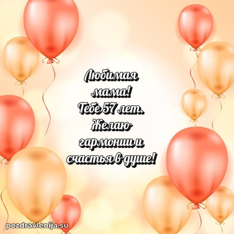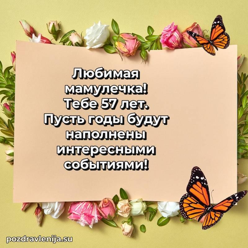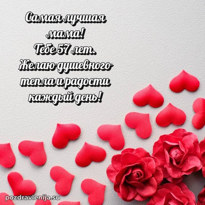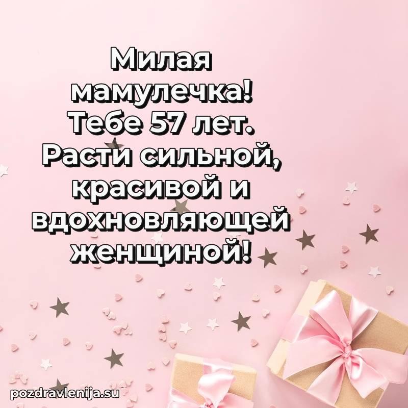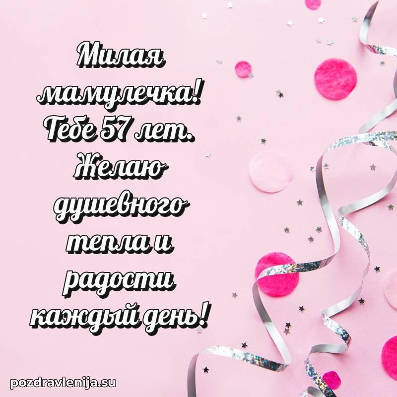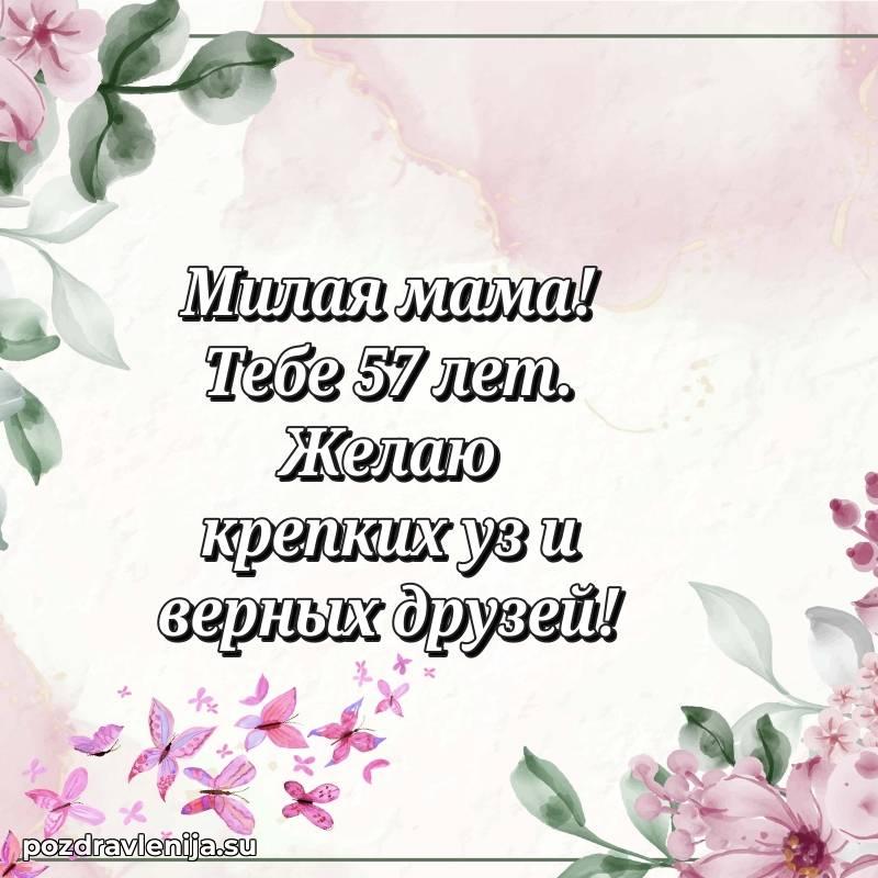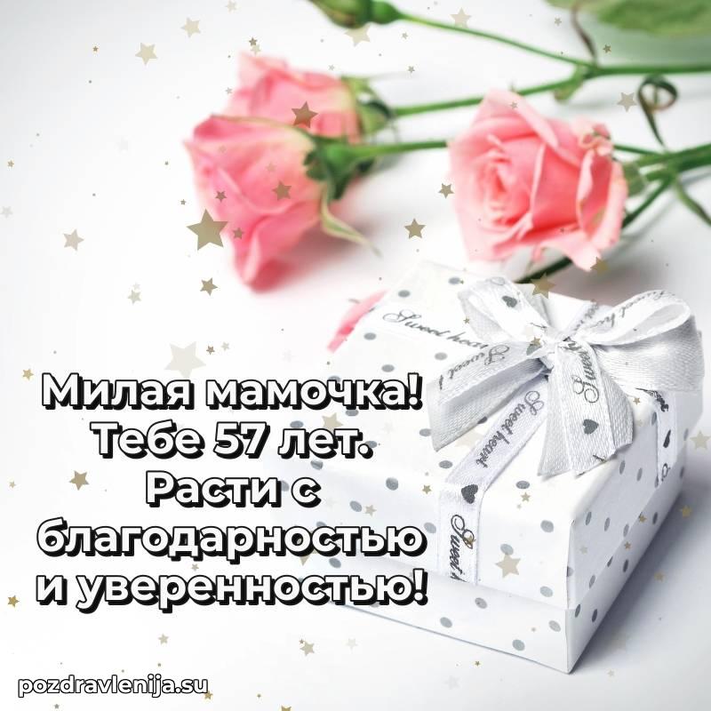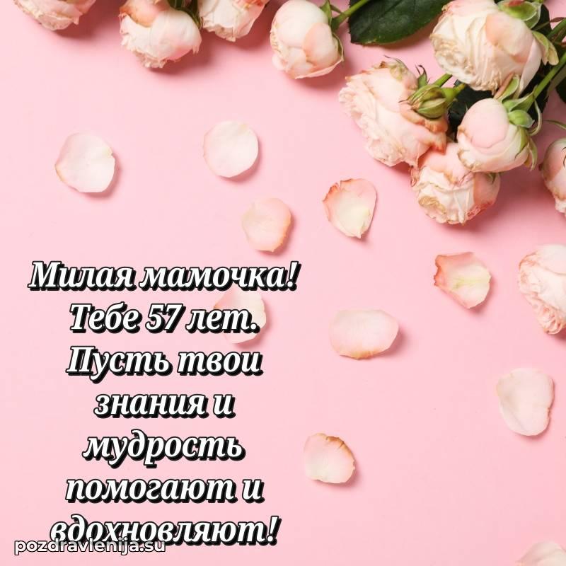 Мамочка, с прекрасным возрастом 57 лет! Пусть жизнь цветет яркими красками, а мечты становятся реальностью.