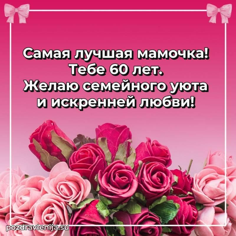 Мамочка, с прекрасным возрастом 60 лет! Пусть жизнь цветет яркими красками, а мечты становятся реальностью.