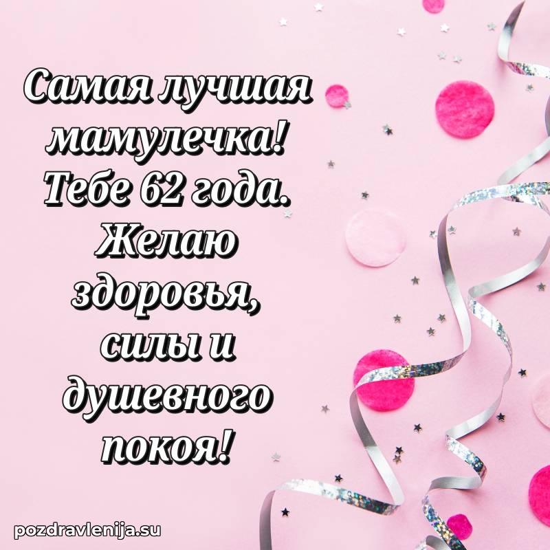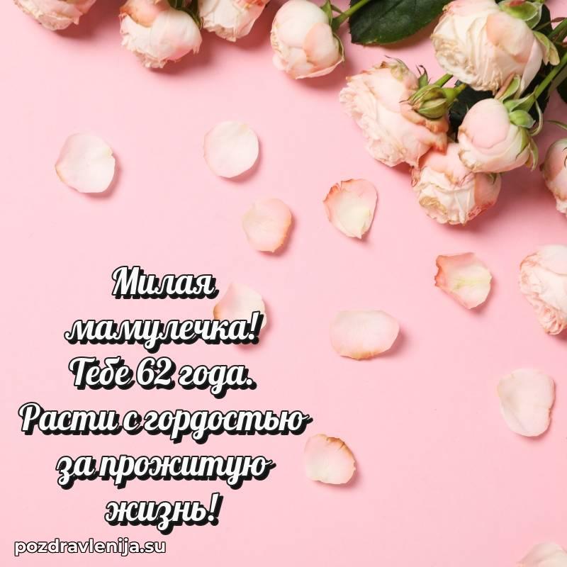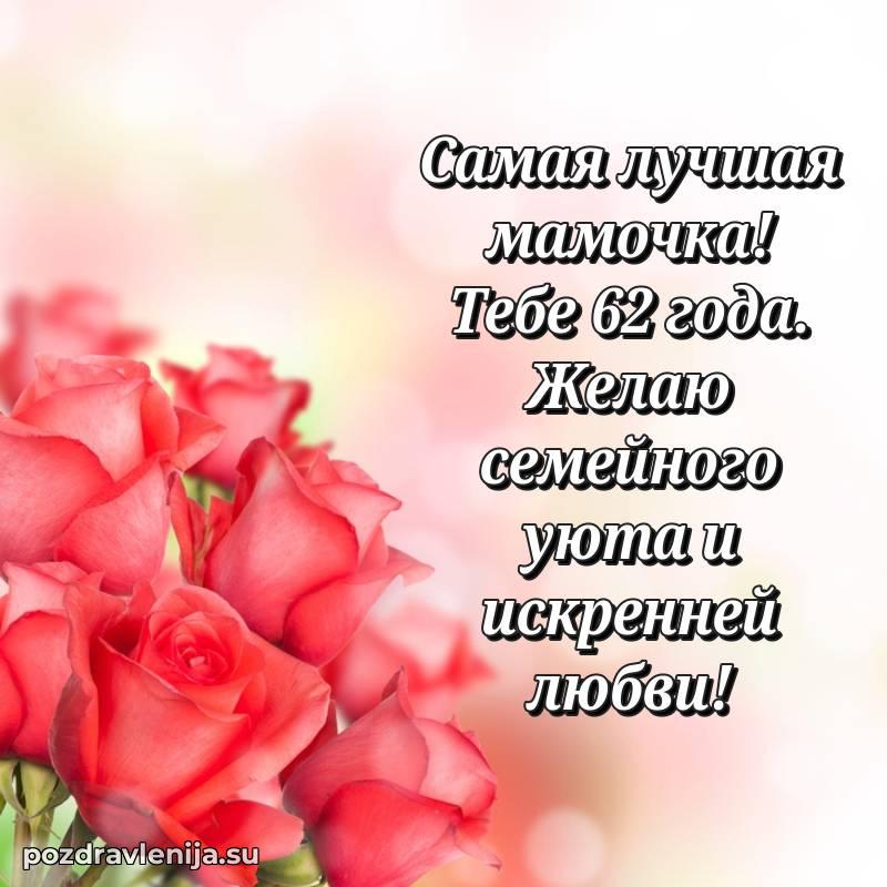 У нас вы найдете широкий выбор красивых и оригинальных поздравлений Маме на 62 года с Днем Рождения, составленных с душой и вниманием к деталям. В данном разделе представлены поздравления как в стихах, способные вызвать улыбку и радость, так и трогательные поздравления в прозе, исполненные своими словами.