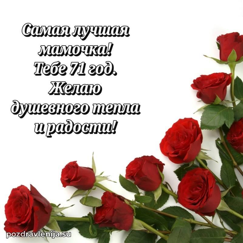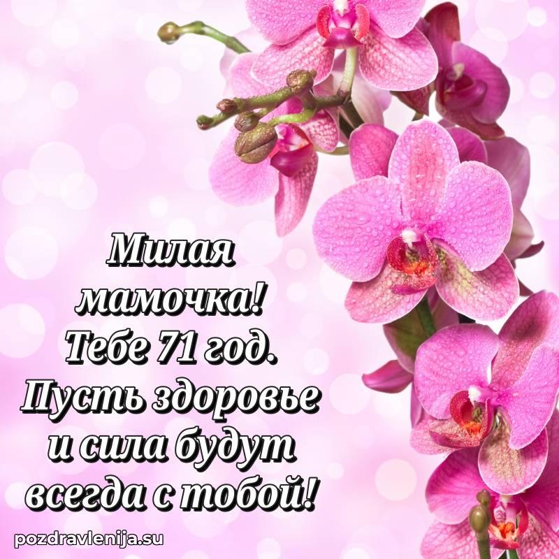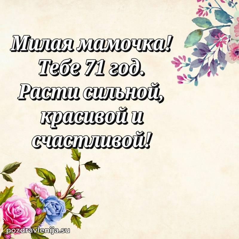 У нас вы найдете широкий выбор красивых и оригинальных поздравлений Маме на 71 год с Днем Рождения, составленных с душой и вниманием к деталям. В данном разделе представлены поздравления как в стихах, способные вызвать улыбку и радость, так и трогательные поздравления в прозе, исполненные своими словами.