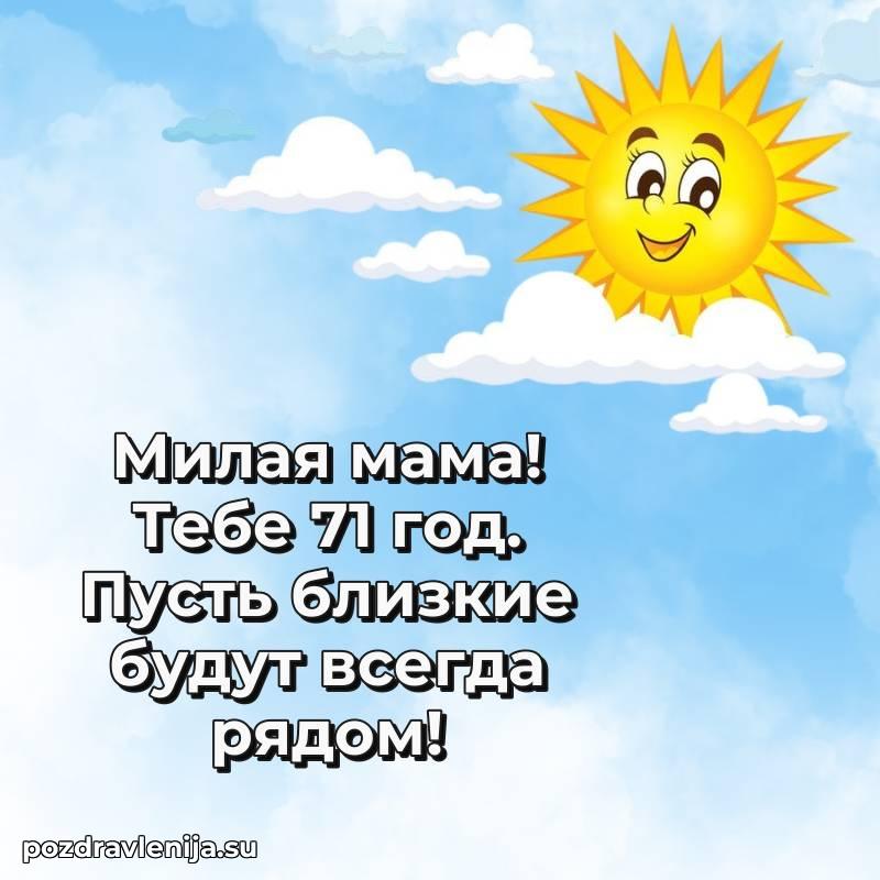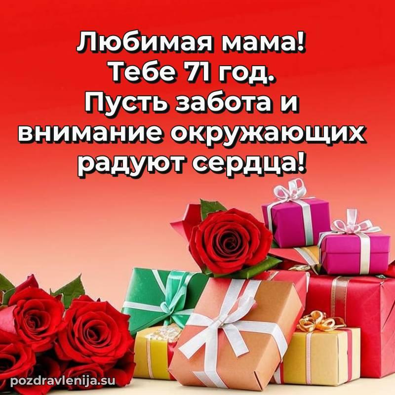 Мамуля, с праздником! Пусть 71 год будет наполнен светом, добротой и счастьем. Ты — наша радость и гордость, мы тебя очень любим!