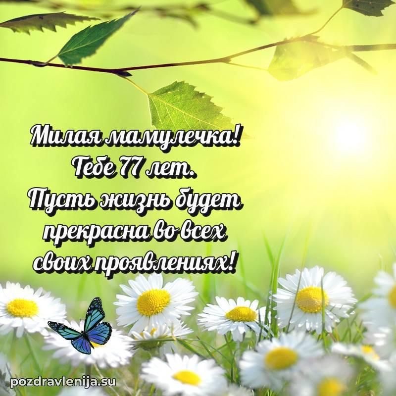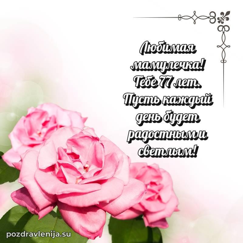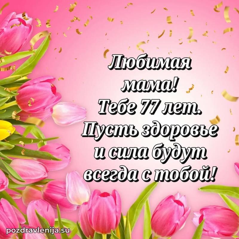Дорогая мама, с днем рождения! Пусть каждый новый день приносит тепло, любовь и много приятных сюрпризов, а 77 лет будет бесконечно светлым.