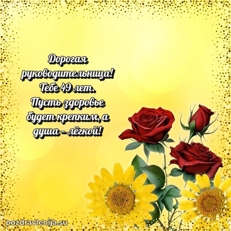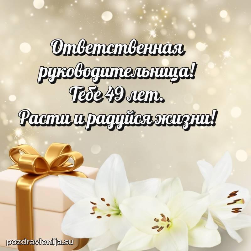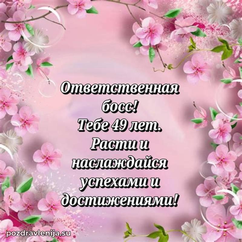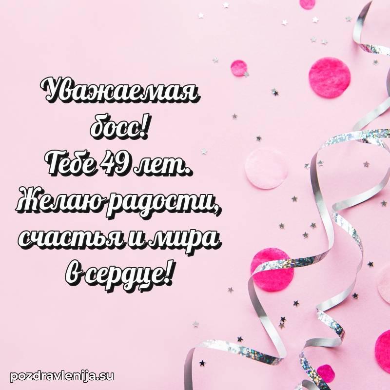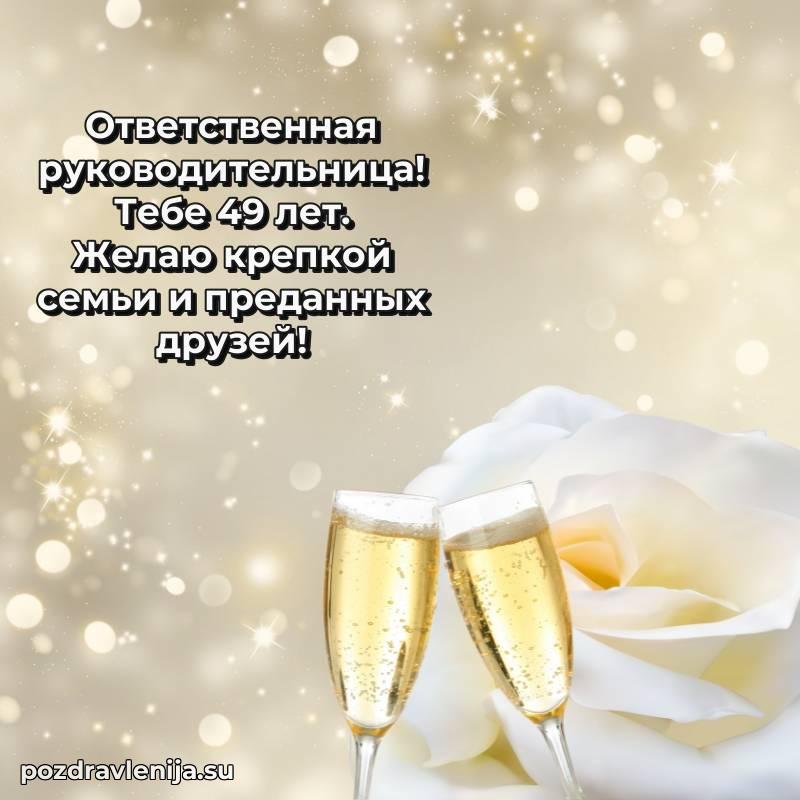 У нас вы найдете широкий выбор красивых и оригинальных поздравлений Начальнице на 49 лет с Днем Рождения, составленных с душой и вниманием к деталям. В данном разделе представлены поздравления как в стихах, способные вызвать улыбку и радость, так и трогательные поздравления в прозе, исполненные своими словами.