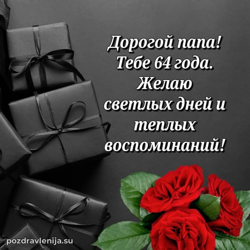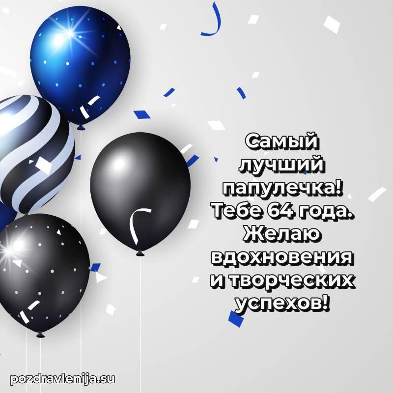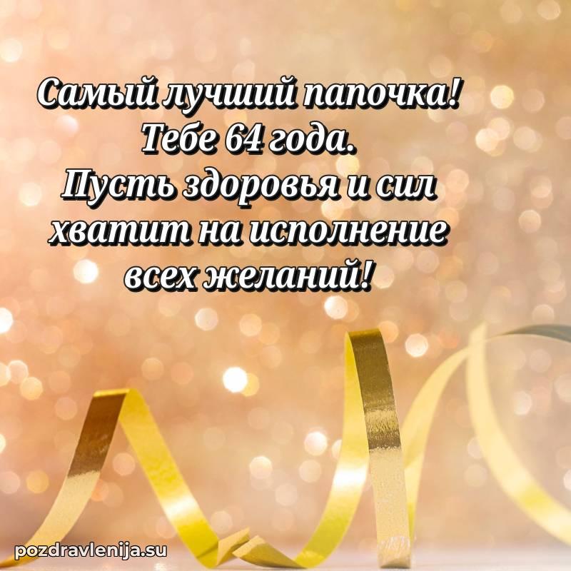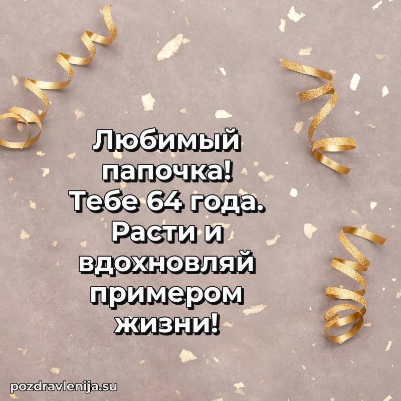 С днем рождения, 64 года! Пусть в твоей жизни всегда будет место для радости, смеха и благополучия.