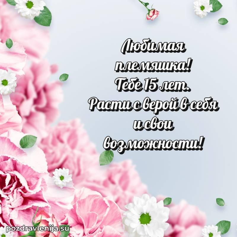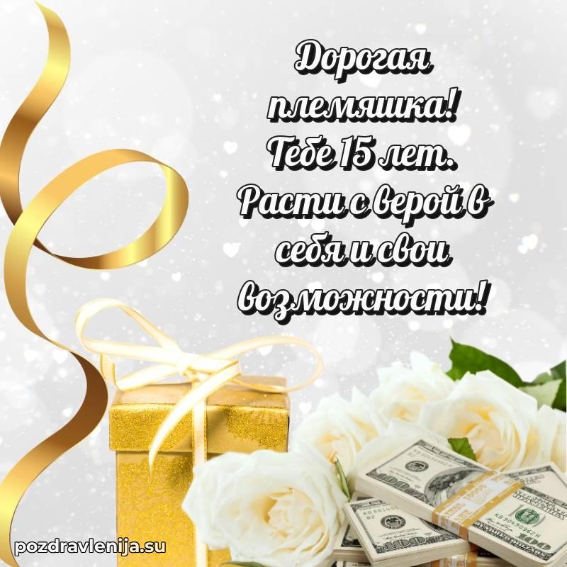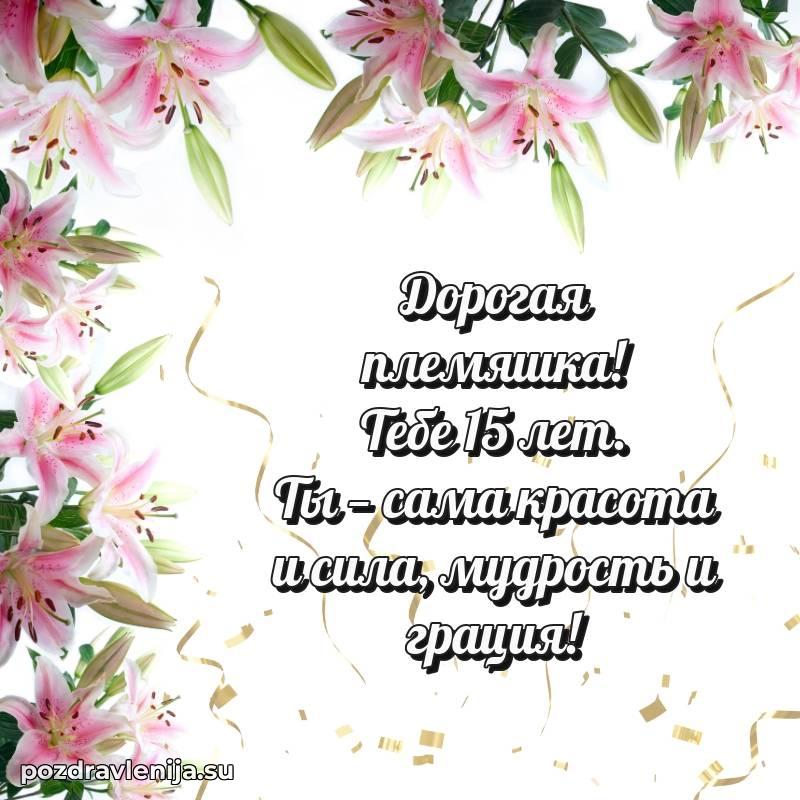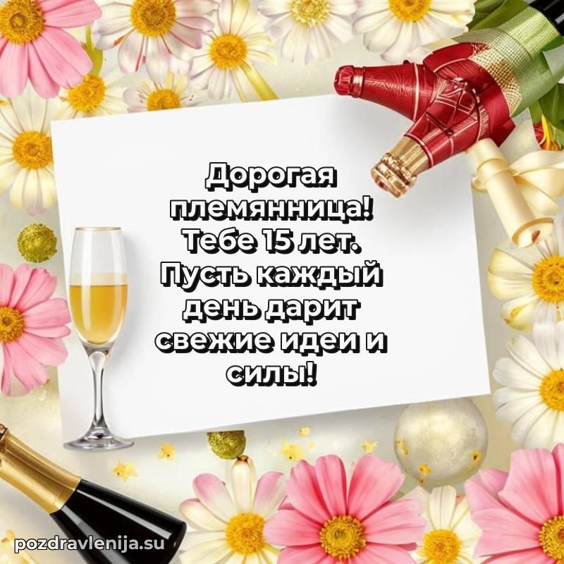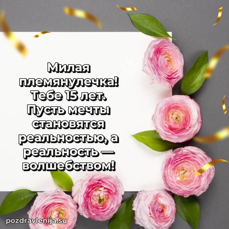 Дорогая племянница! Поздравляю тебя и желаю, чтобы 15 лет стал годом удивительных приключений, новых друзей и самых невероятных открытий!