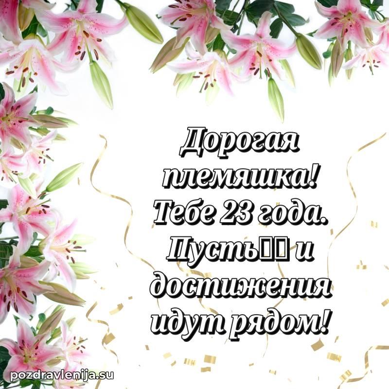 У нас вы найдете широкий выбор красивых и оригинальных поздравлений Племяннице на 23 года с Днем Рождения, составленных с душой и вниманием к деталям. В данном разделе представлены поздравления как в стихах, способные вызвать улыбку и радость, так и трогательные поздравления в прозе, исполненные своими словами.