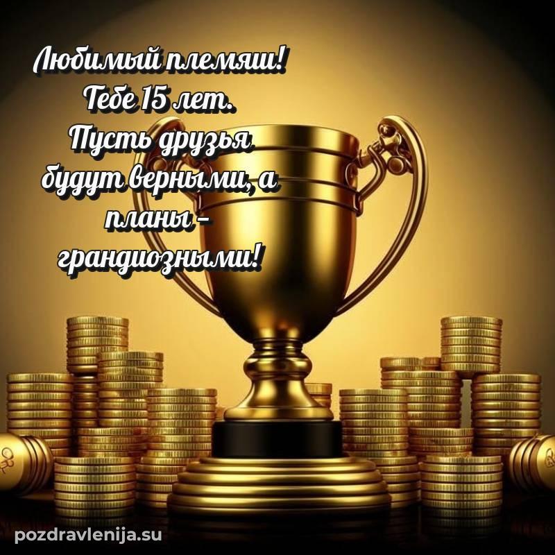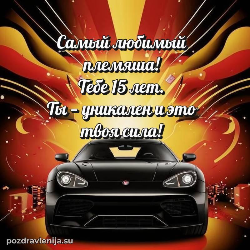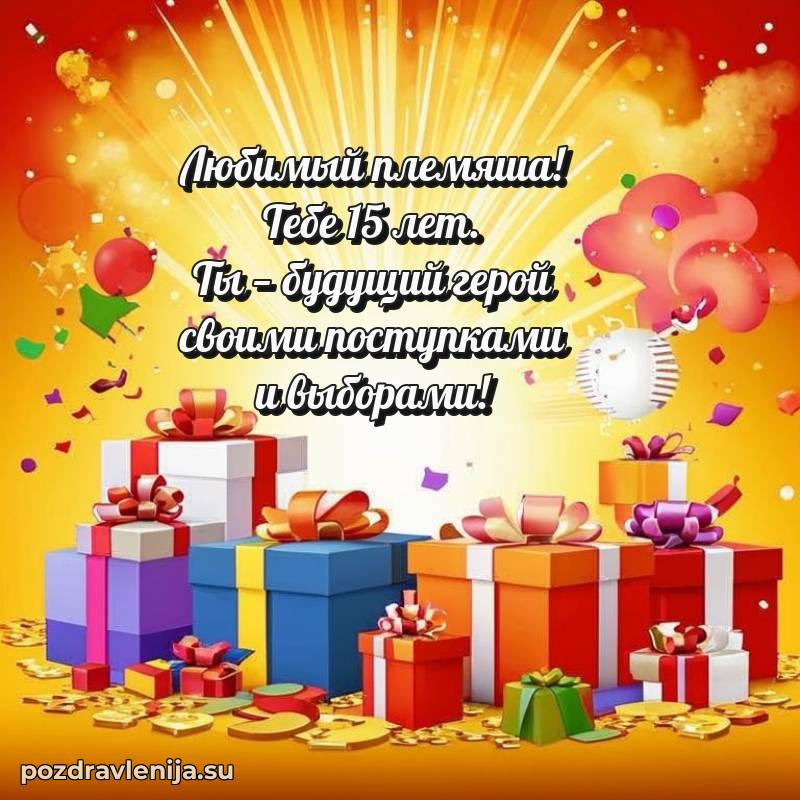 С днем рождения, мой замечательный племянник! Этот особенный день наступил, и 15 лет - самый чудесный возраст для новых открытий и приключений. Пусть твоя жизнь будет полна увлекательных историй и веселых моментов!