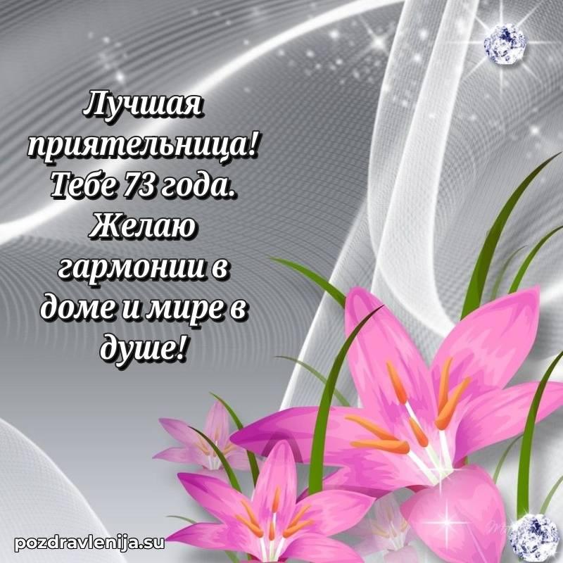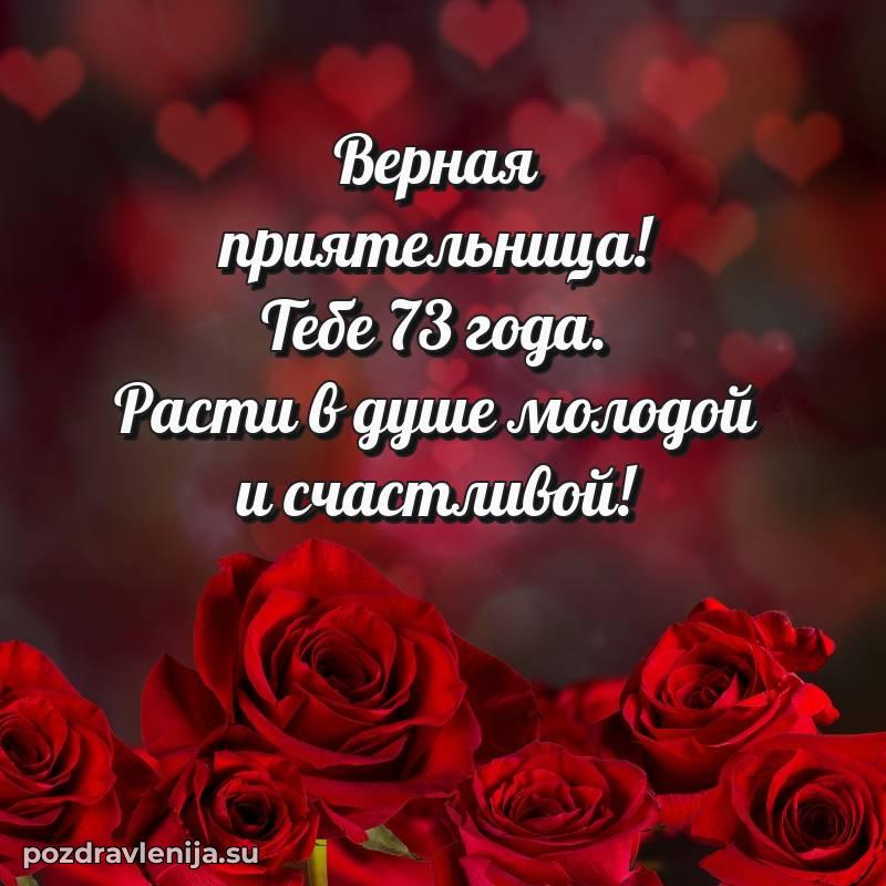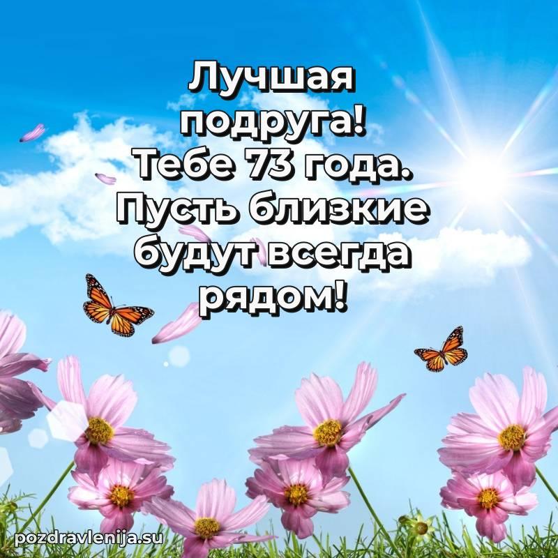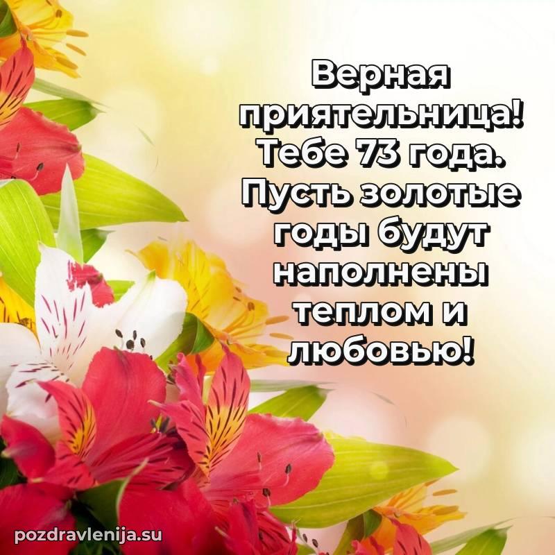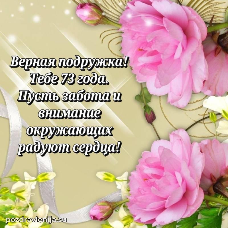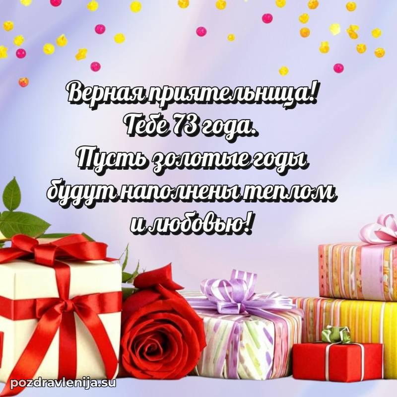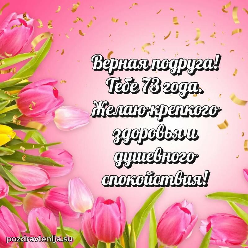 У нас вы найдете широкий выбор красивых и оригинальных поздравлений Подруге на 73 года с Днем Рождения, составленных с душой и вниманием к деталям. В данном разделе представлены поздравления как в стихах, способные вызвать улыбку и радость, так и трогательные поздравления в прозе, исполненные своими словами.