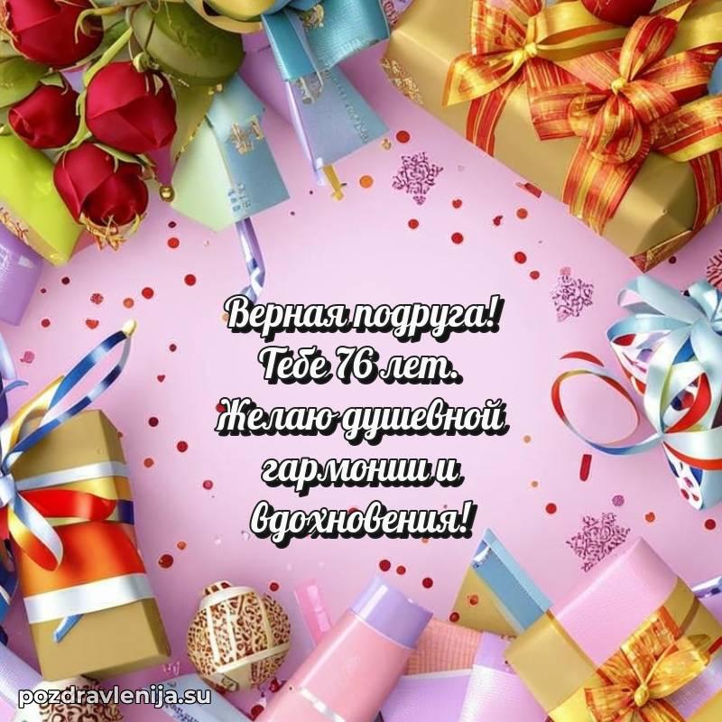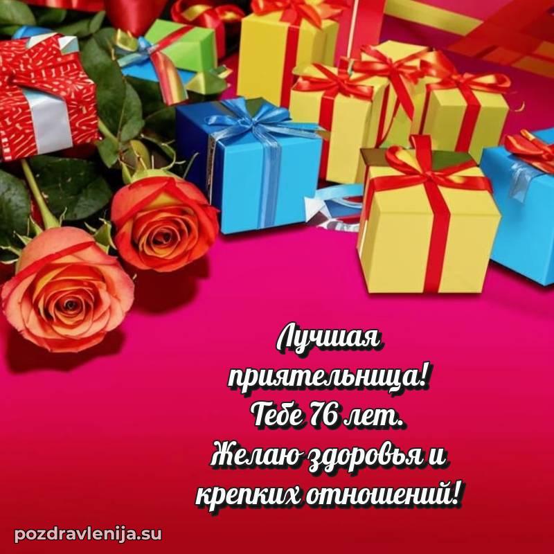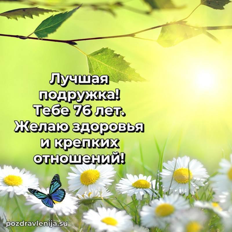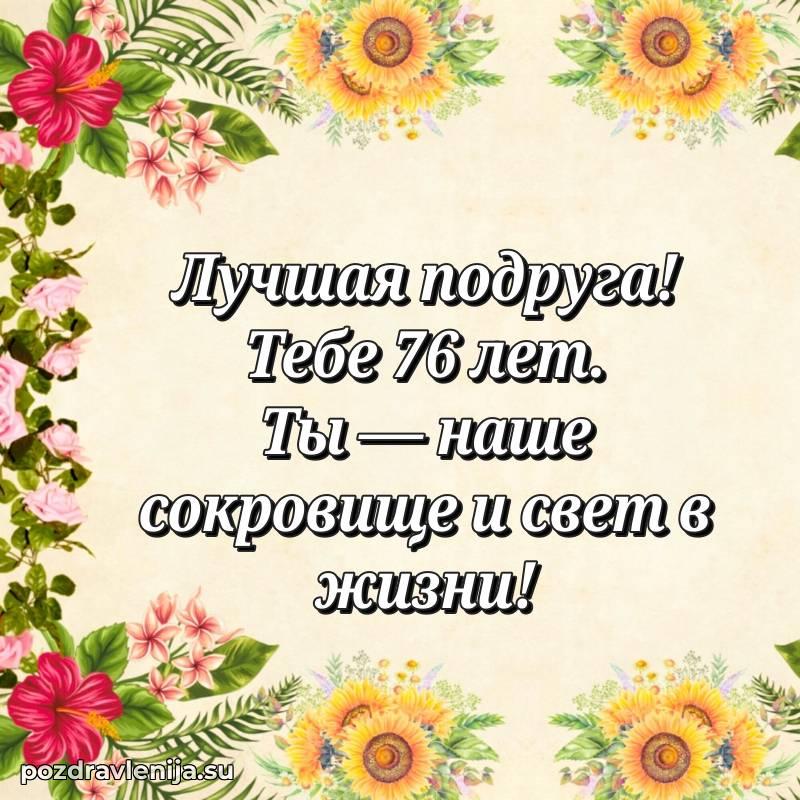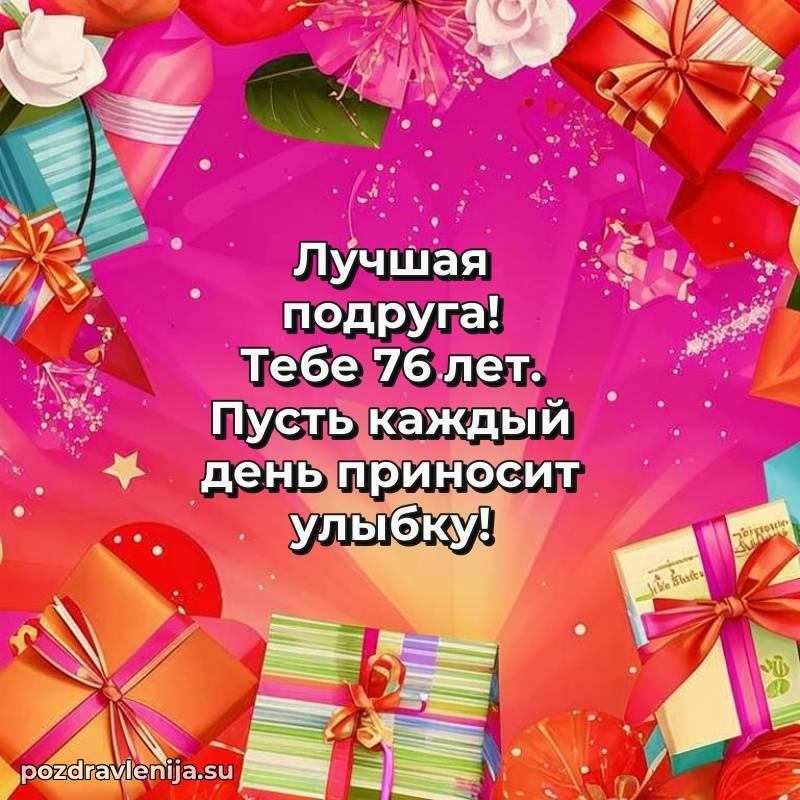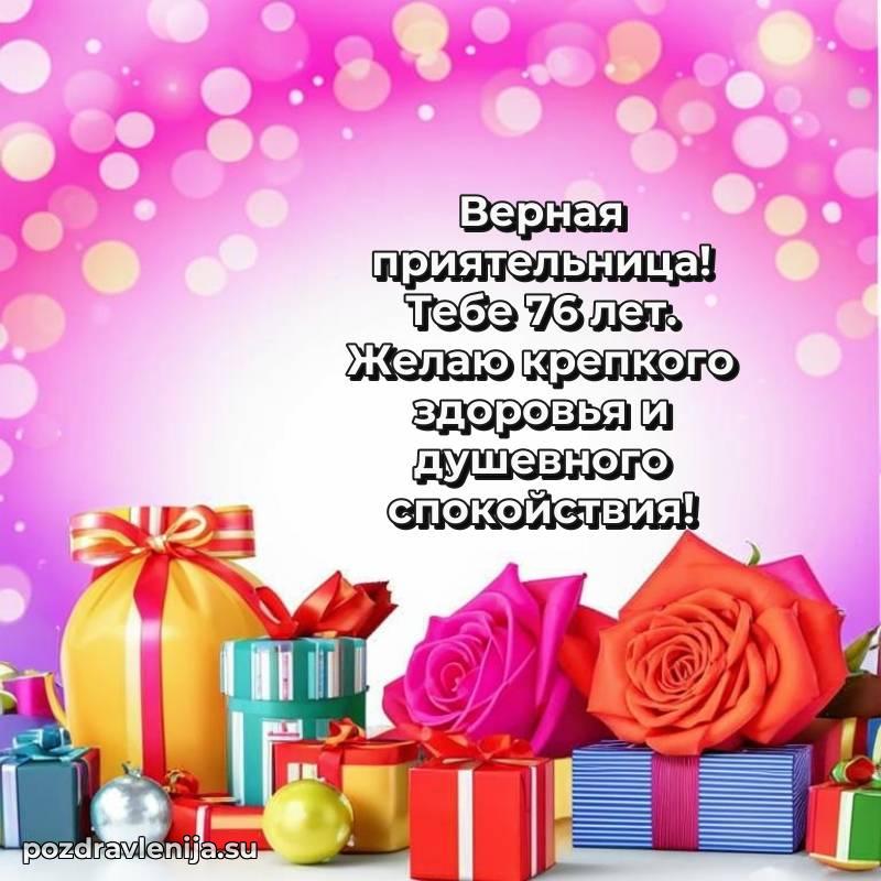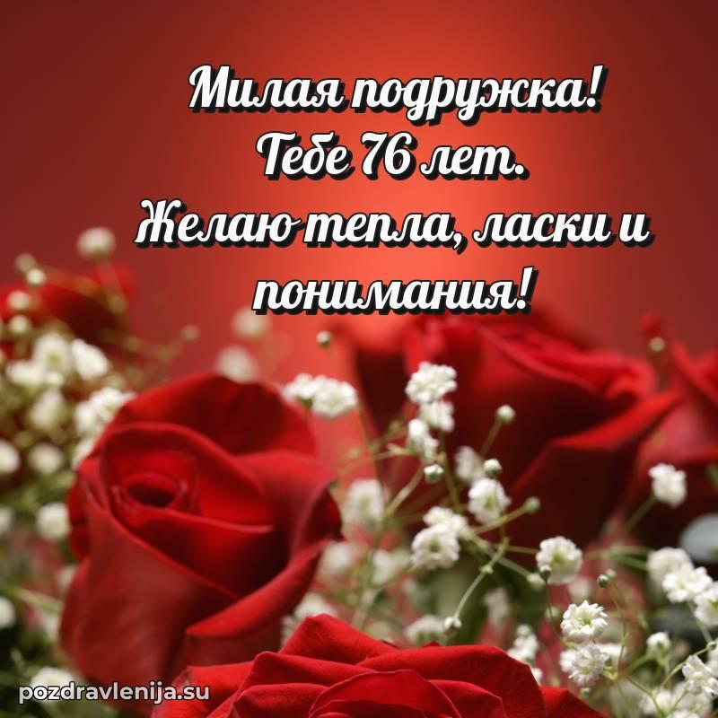 У нас вы найдете широкий выбор красивых и оригинальных поздравлений Подруге на 76 лет с Днем Рождения, составленных с душой и вниманием к деталям. В данном разделе представлены поздравления как в стихах, способные вызвать улыбку и радость, так и трогательные поздравления в прозе, исполненные своими словами.