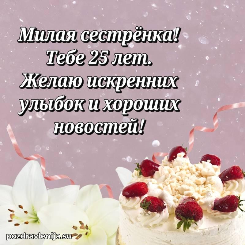 У нас вы найдете широкий выбор красивых и оригинальных поздравлений Сестре на 25 лет с Днем Рождения, составленных с душой и вниманием к деталям. В данном разделе представлены поздравления как в стихах, способные вызвать улыбку и радость, так и трогательные поздравления в прозе, исполненные своими словами.