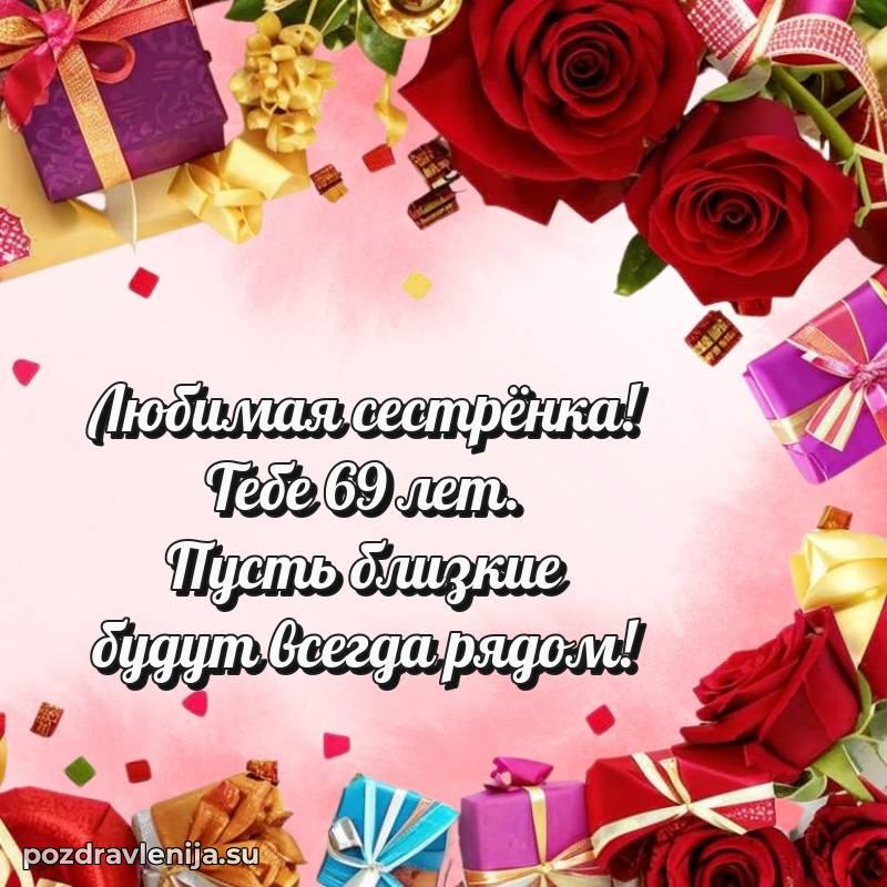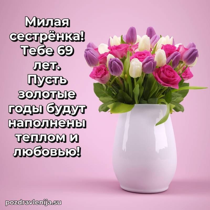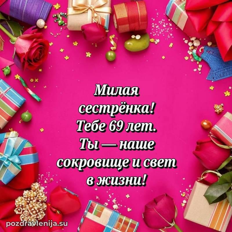 У нас вы найдете широкий выбор красивых и оригинальных поздравлений Сестре на 69 лет с Днем Рождения, составленных с душой и вниманием к деталям. В данном разделе представлены поздравления как в стихах, способные вызвать улыбку и радость, так и трогательные поздравления в прозе, исполненные своими словами.