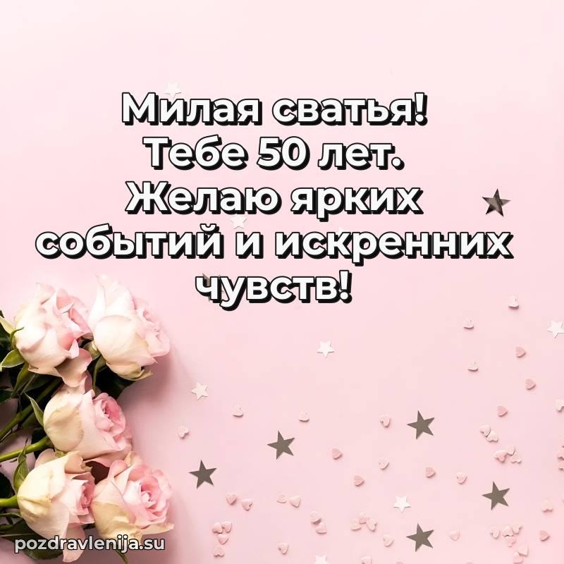 У нас вы найдете широкий выбор красивых и оригинальных поздравлений Сватье на 50 лет с Днем Рождения, составленных с душой и вниманием к деталям. В данном разделе представлены поздравления как в стихах, способные вызвать улыбку и радость, так и трогательные поздравления в прозе, исполненные своими словами.