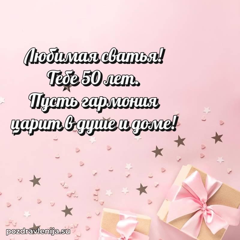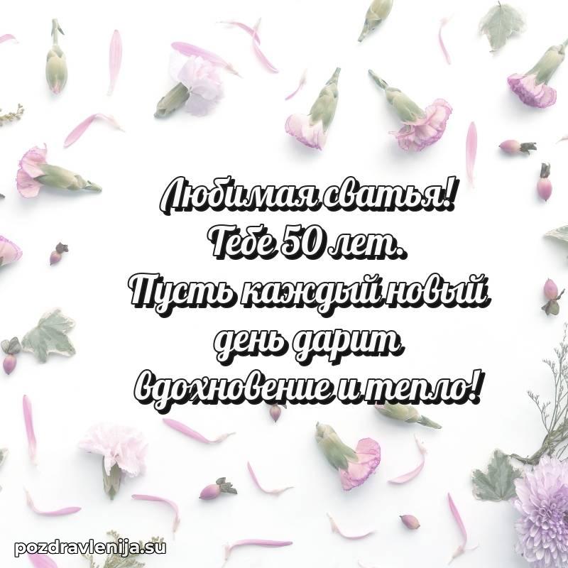 Сердечно поздравляю тебя, 50 лет! Пусть в душе царит гармония, а в жизни будет полно светлых и радостных мгновений.