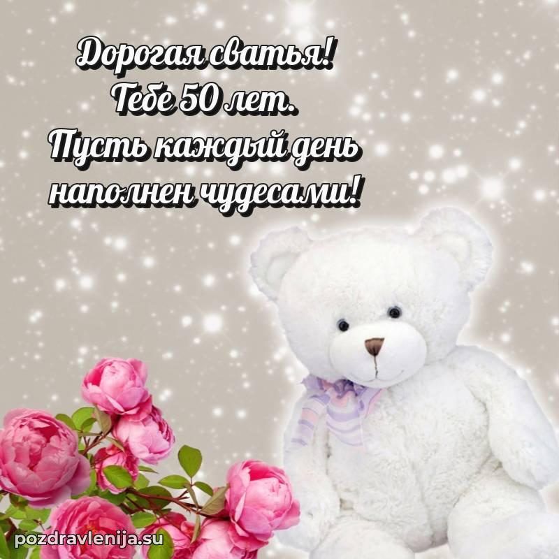 Сватьюшка дорогая, с праздником Вас! Желаю Вам долгой и счастливой жизни, полной радостных моментов и приятных событий. Пусть здоровье будет крепким, настроение – отличным, а энергия – неиссякаемой. Благодарю Вас за теплое отношение и понимание. Пусть в Вашем доме всегда царят любовь, уют и благополучие!
