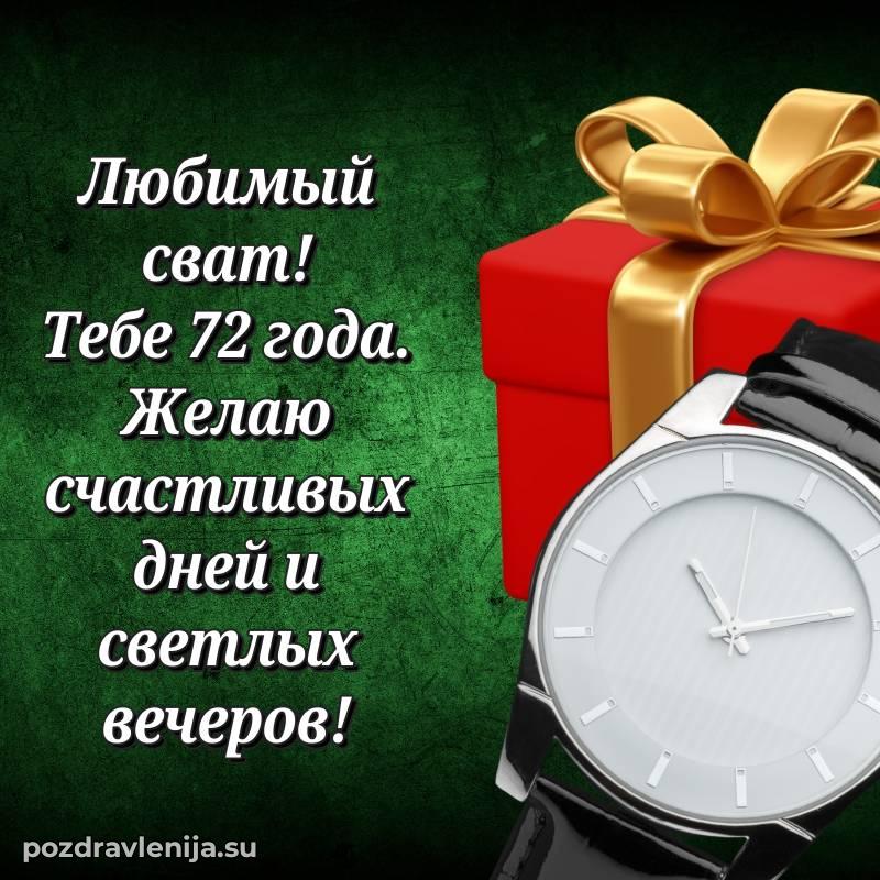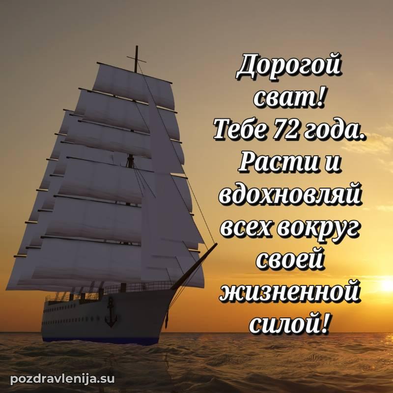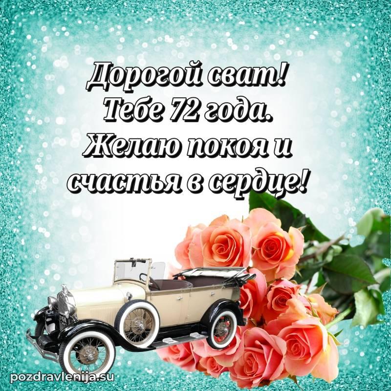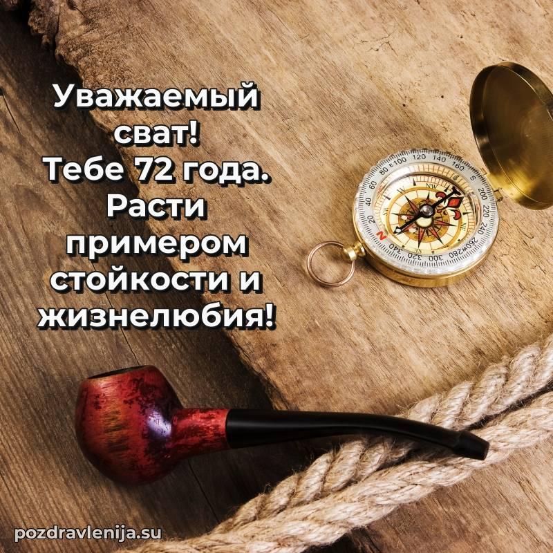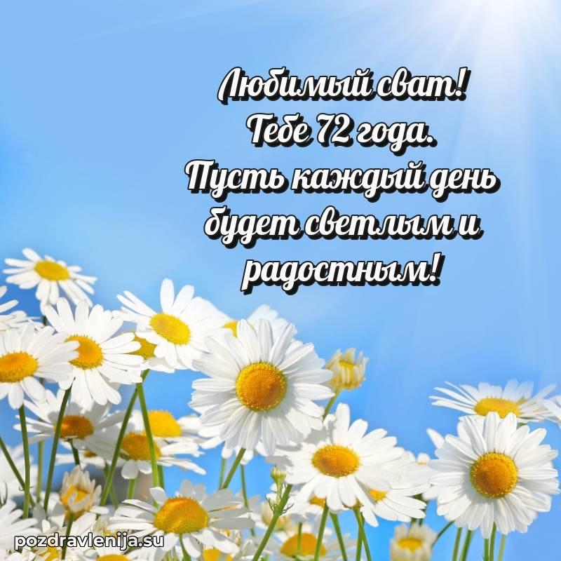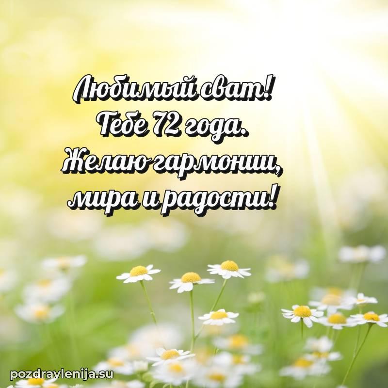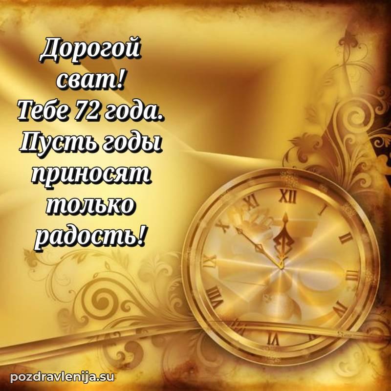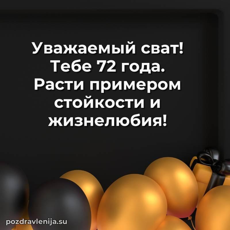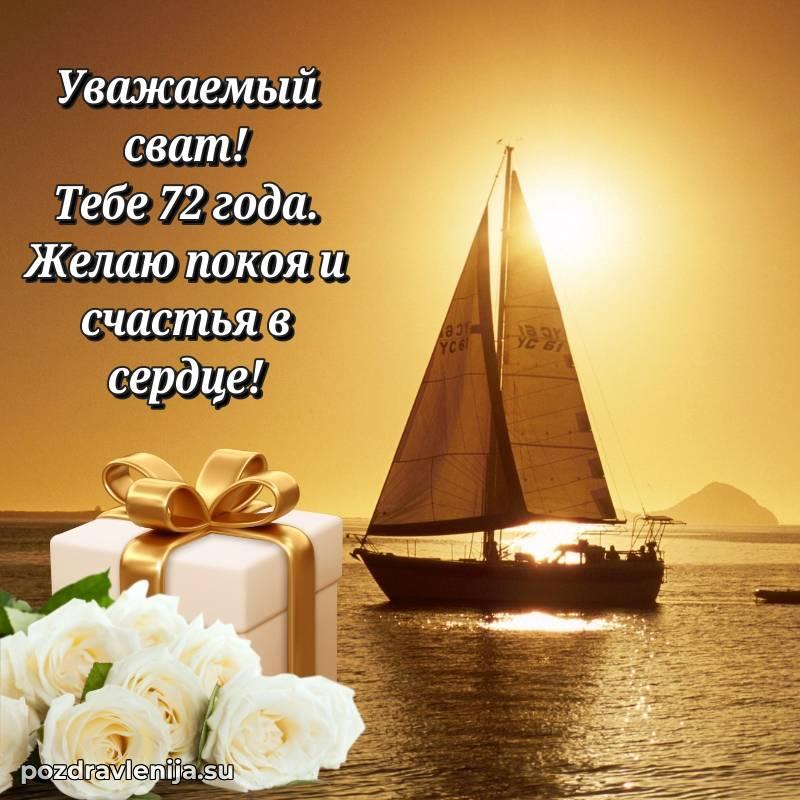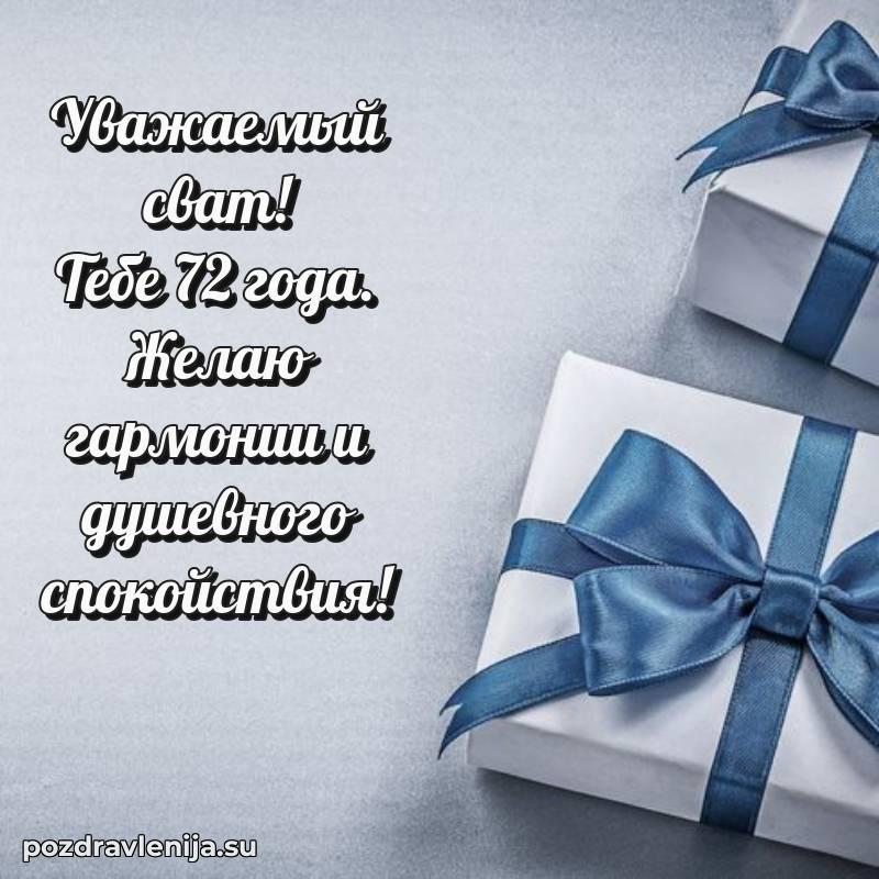 Сват родной, с праздником Вас! Пусть жизнь будет как добрая сказка — полна чудес и счастливых моментов. Желаю Вам крепкого здоровья, много энергии и радости в каждом дне. Пусть 72 года приносят только счастье!
