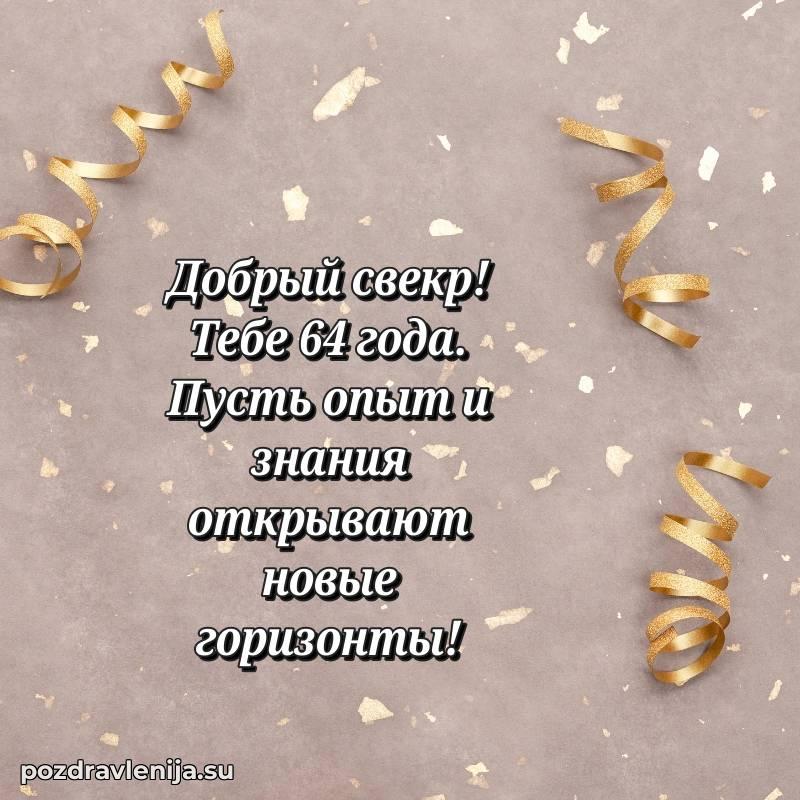 Поздравляю с особенным возрастом 64 года! Пусть он будет полон ярких событий, здоровья и улыбок близких.