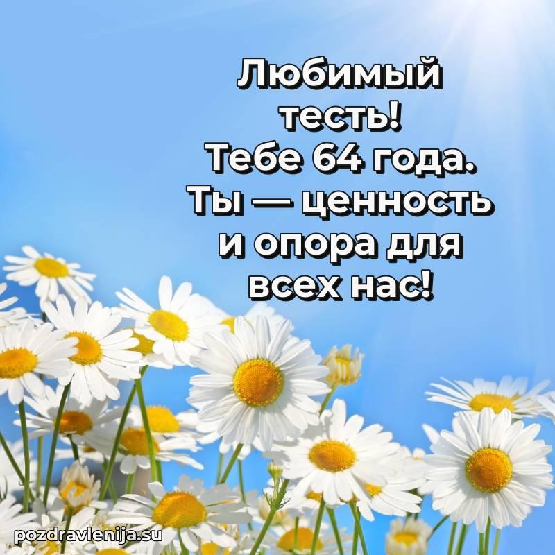 Тесть дорогой, этот тост для Вас! Пусть Ваша жизнь будет яркой, как летнее солнце, и теплой, как семейный очаг. Желаю Вам неиссякаемого здоровья, успехов во всех делах и радости в каждом мгновении. За Ваши 64 года, которые открывают новые страницы счастья!