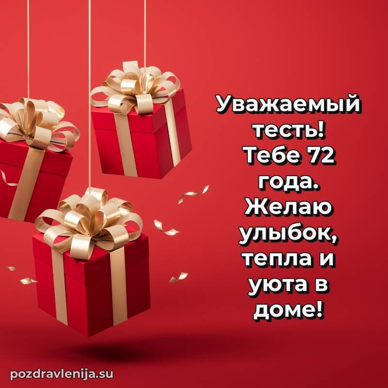 Тесть мой, тост в Вашу честь! Желаю, чтобы каждый день был полон энергии, радости и новых идей. Пусть здоровье не подводит, а в семье царит любовь и поддержка. Пусть жизнь дарит только приятные сюрпризы. За Ваши 72 года, которые стали началом новых успехов!