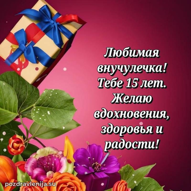 Желаем тебе, чтобы каждый твой день был наполнен счастьем! В твоей жизни 15 лет – это прекрасное время, когда мир открывает перед тобой множество возможностей. Используй их с умом!