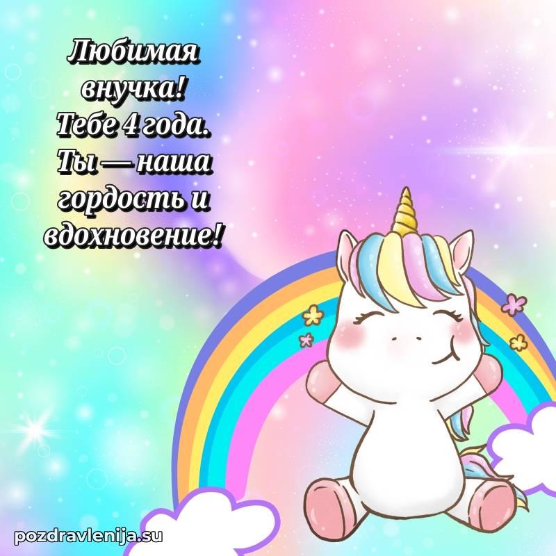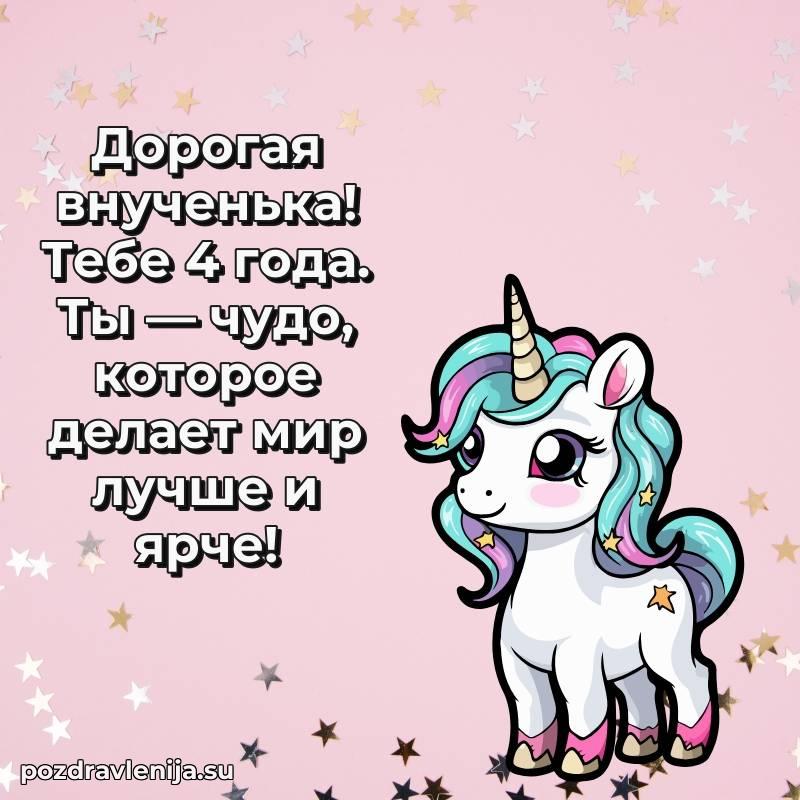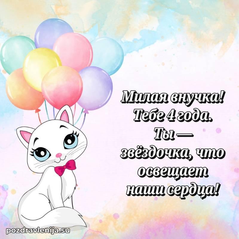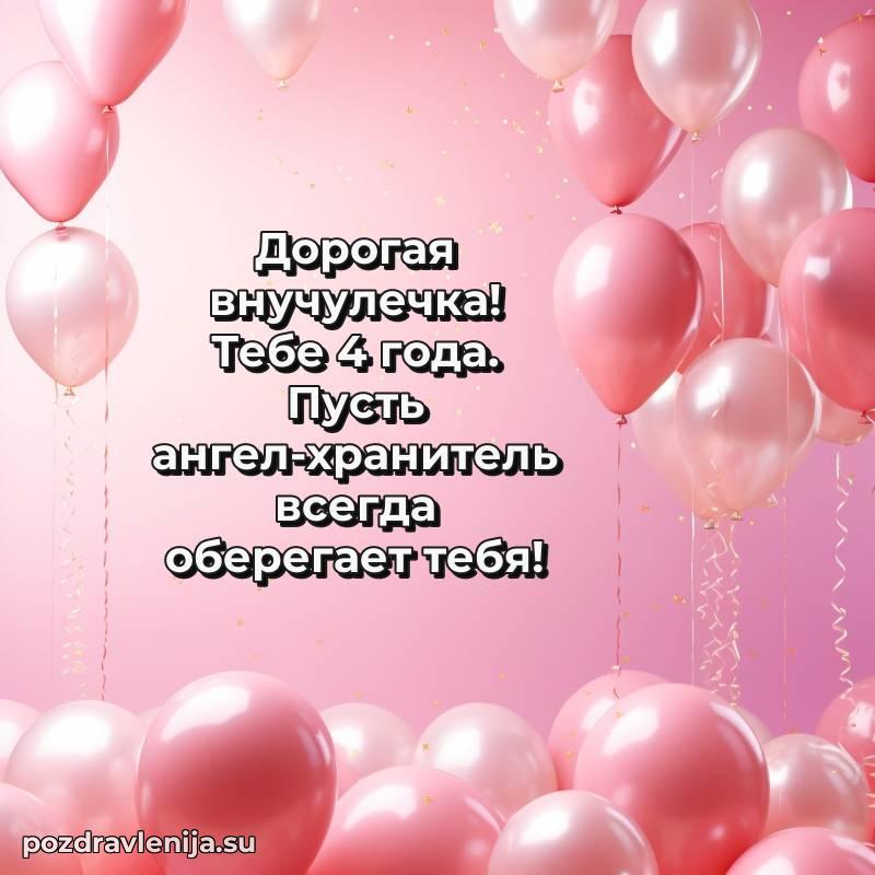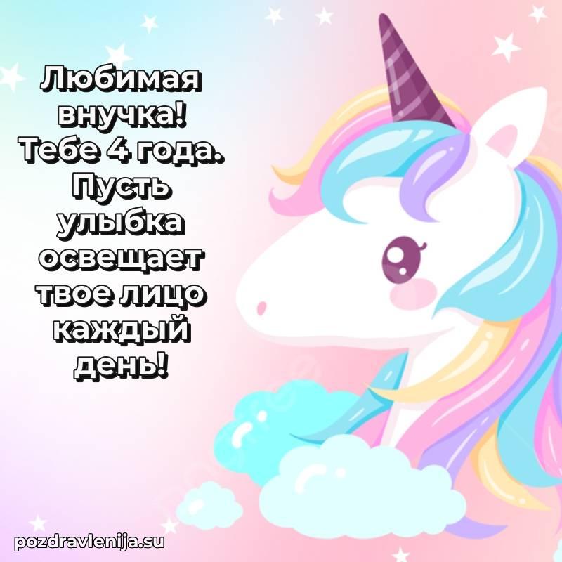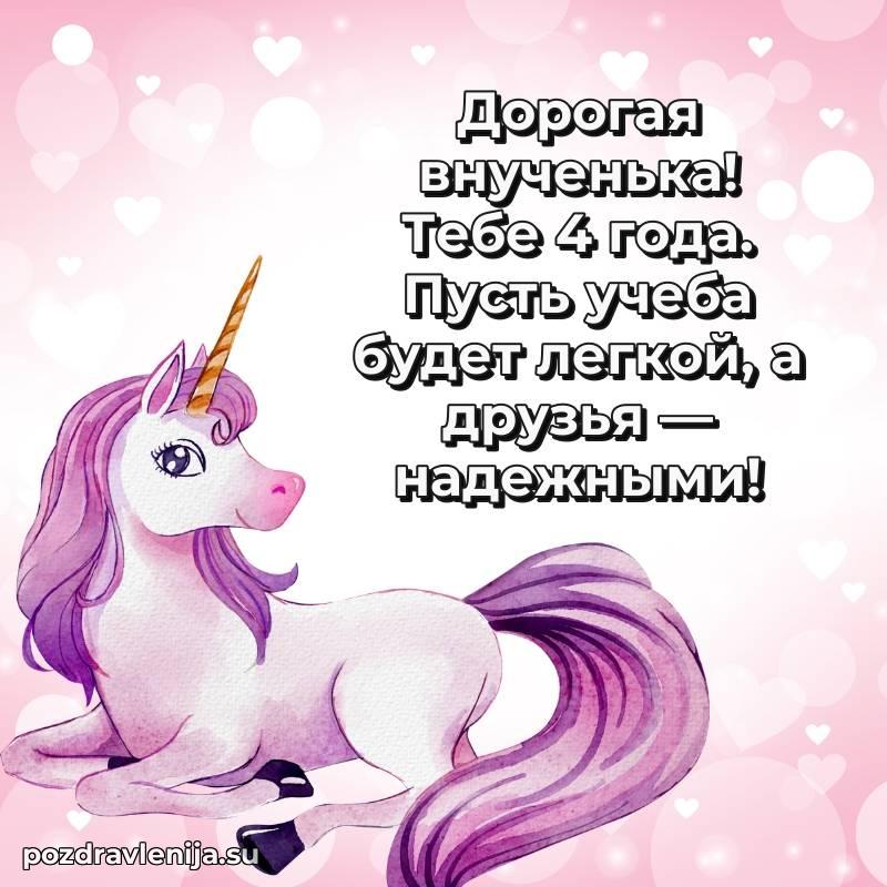 Милая внученька! В этот особенный день 4 года получает самые искренние пожелания! Расти здоровой, умной и счастливой! Пусть твои глаза всегда светятся от счастья!