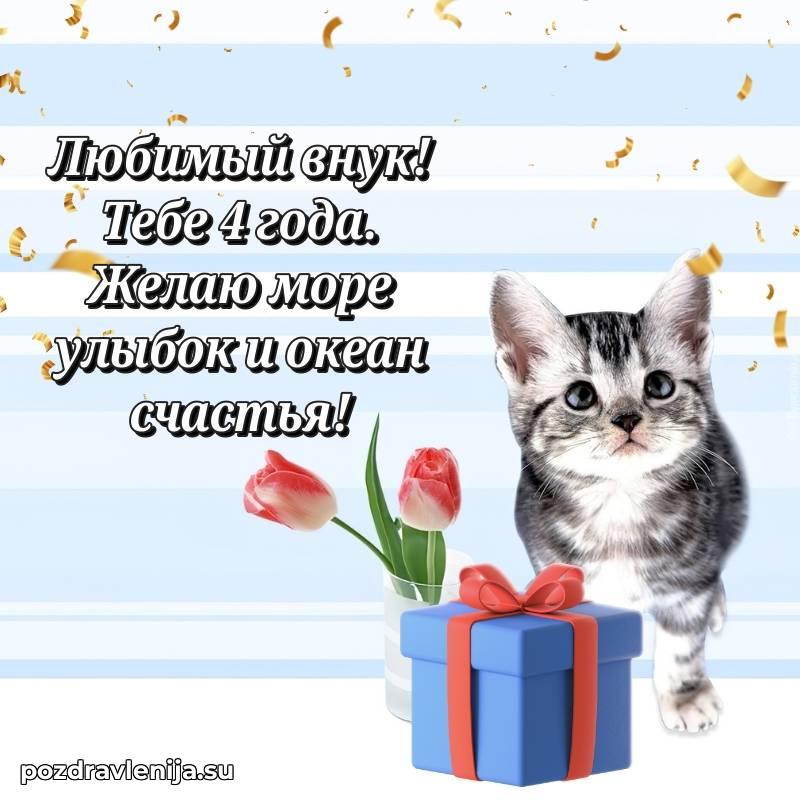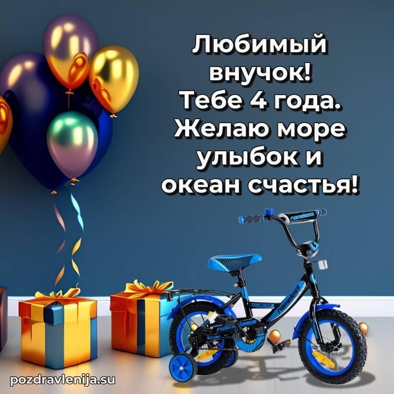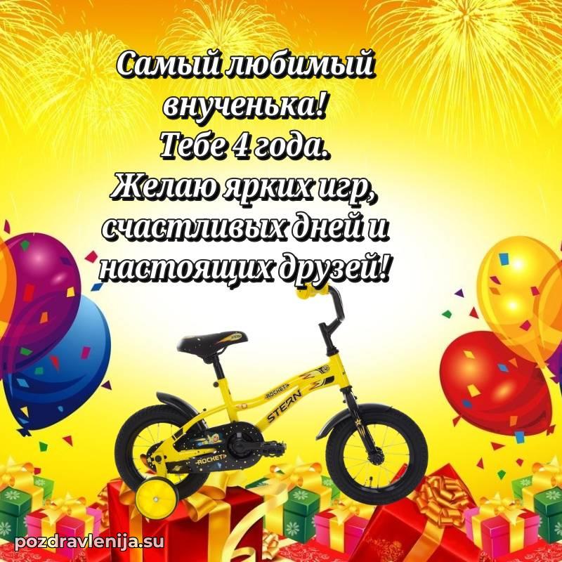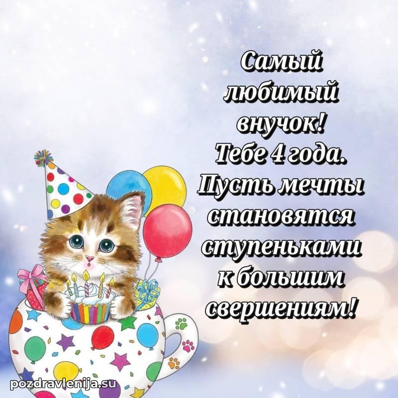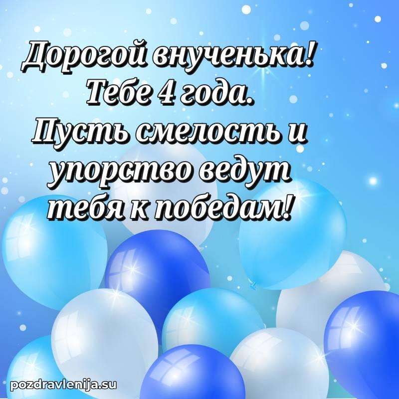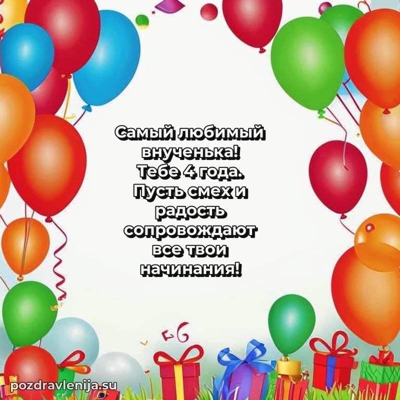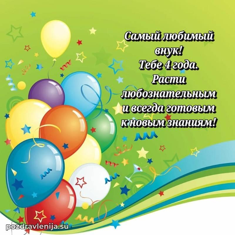 У нас вы найдете широкий выбор красивых и оригинальных поздравлений Внуку на 4 года с Днем Рождения, составленных с душой и вниманием к деталям. В данном разделе представлены поздравления как в стихах, способные вызвать улыбку и радость, так и трогательные поздравления в прозе, исполненные своими словами.