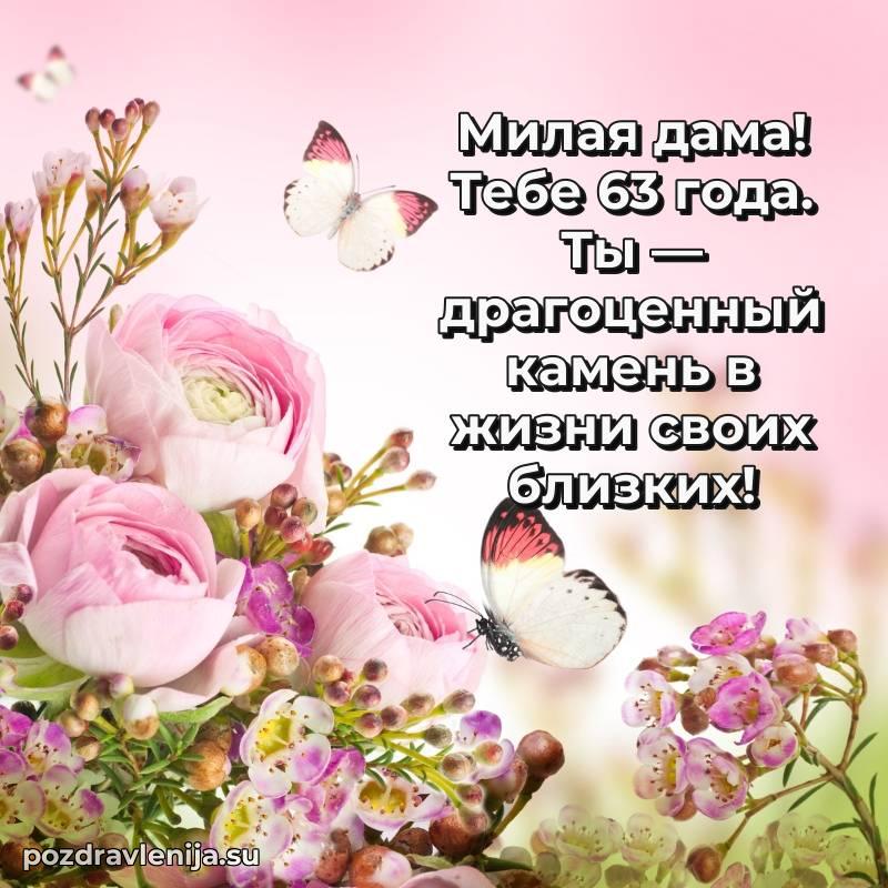 С замечательным возрастом 63 года поздравляю вас! Пусть ваша жизнь будет насыщена радостью, любовью и благополучием.