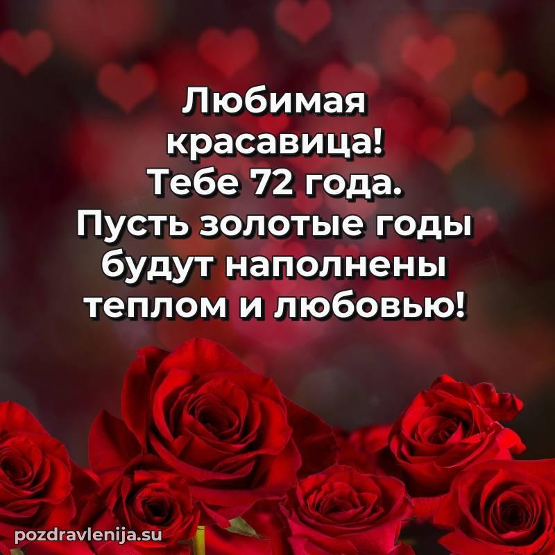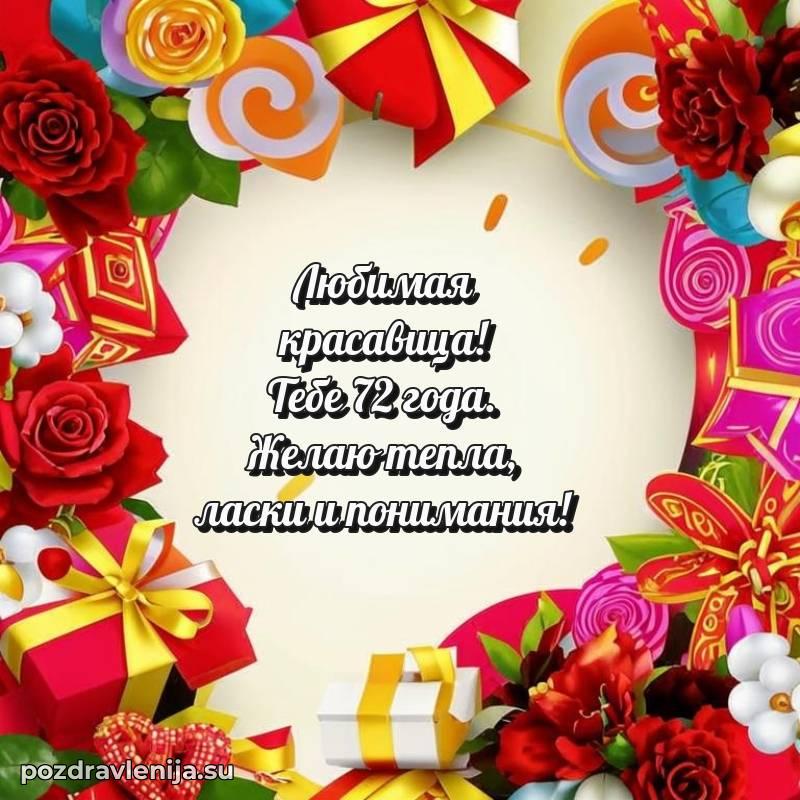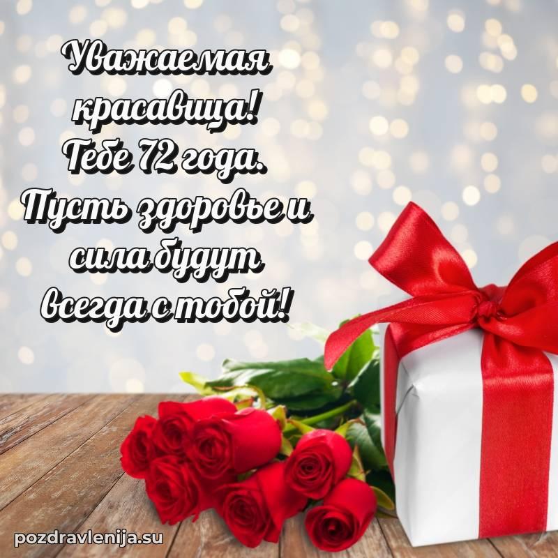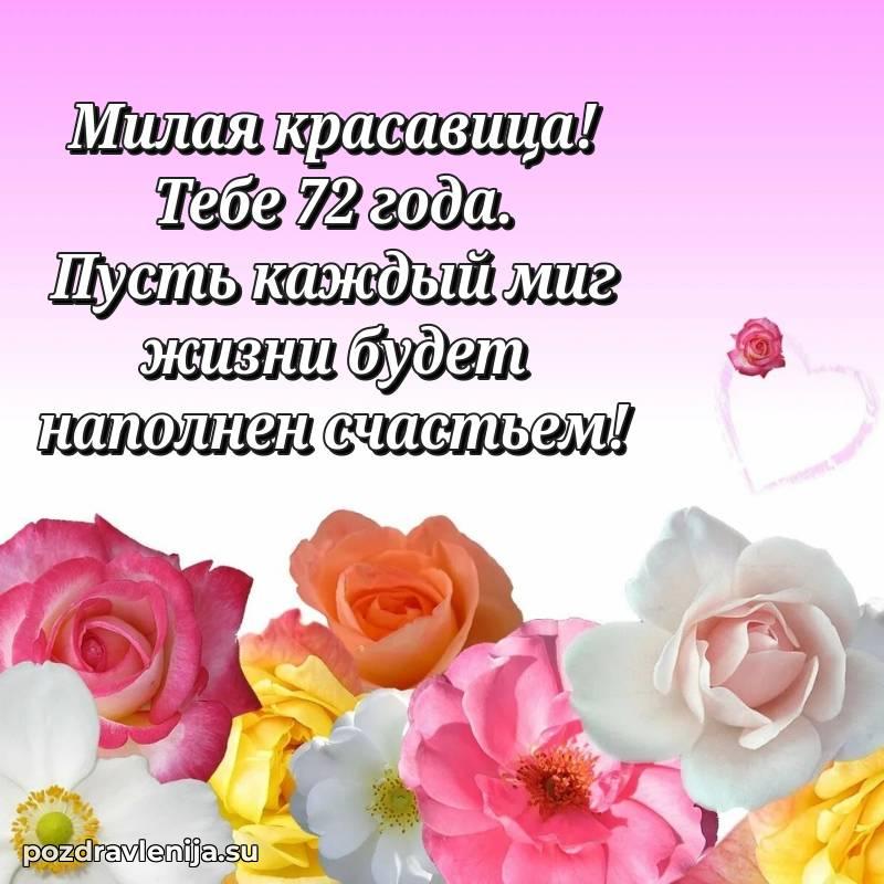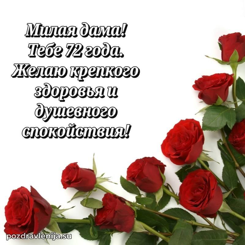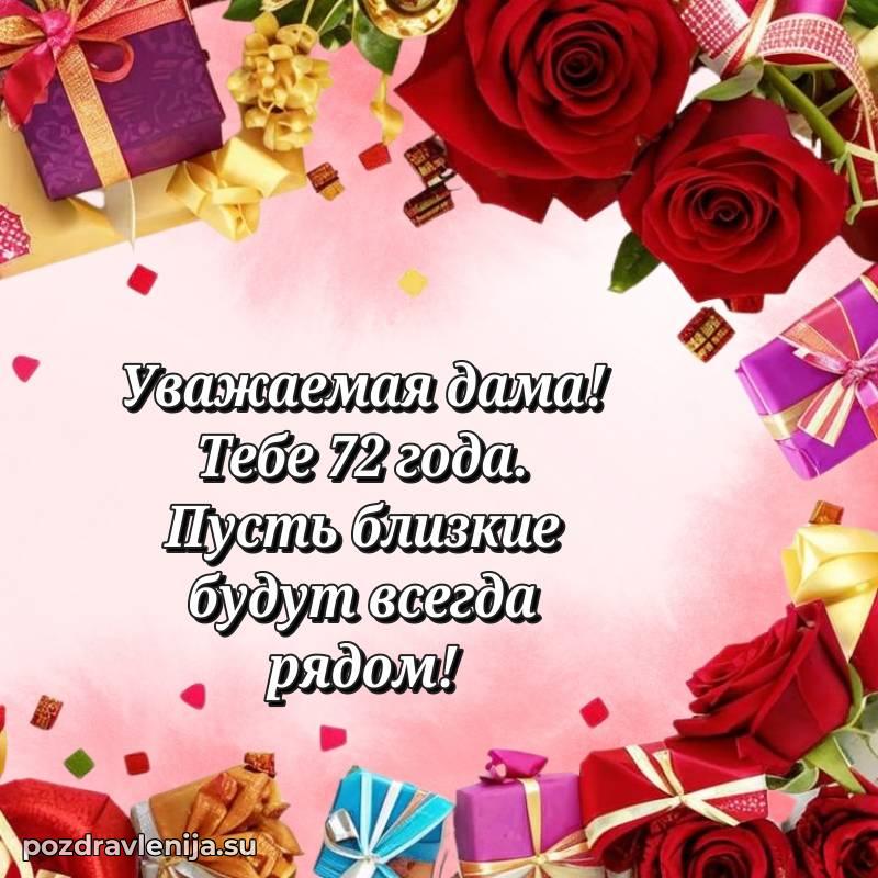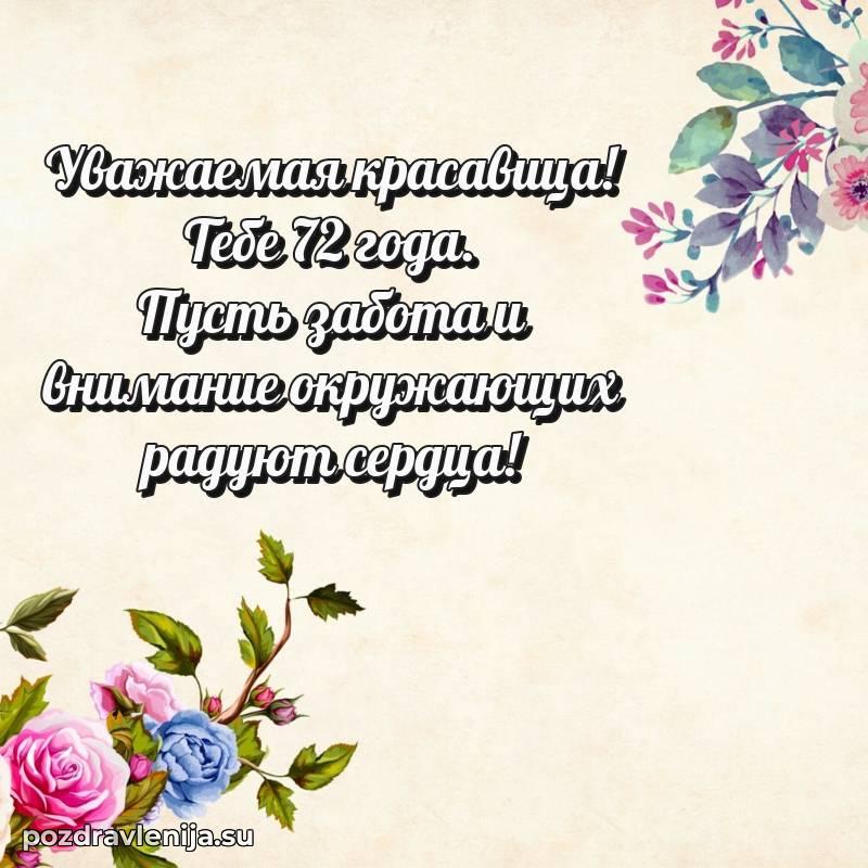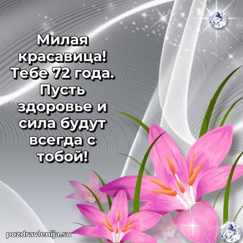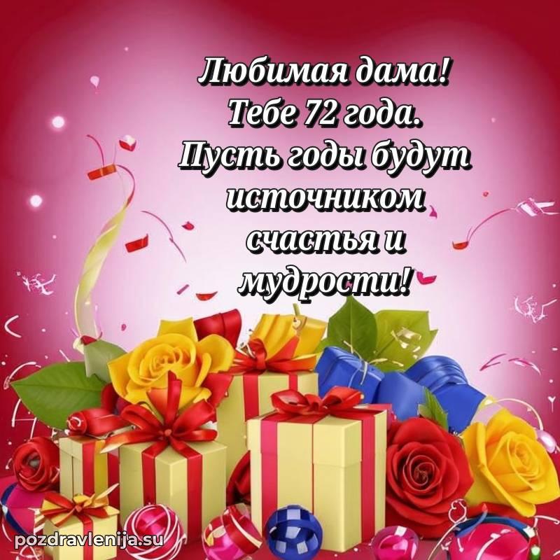 С днем рождения! 72 года — прекрасный этап жизни, полный мудрости и жизненного опыта. Пусть ваши мечты реализуются легко и красиво.