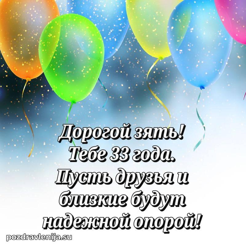 Зять, от всей души поздравляю! Желаю тебе крепкого здоровья, успехов на работе и счастья в личной жизни. Пусть каждый день будет наполнен положительными эмоциями. Пусть 33 года принесут тебе радость и удачу!