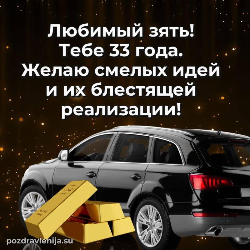 Поздравляем, зять, с твоим днём! В 33 года ты уже многого достиг. Желаем тебе здоровья, как у горного камня, счастья в личной жизни и удачи в делах. Пусть жизнь приносит только приятные сюрпризы, а семья будет твоей крепостью. Мы гордимся тобой!