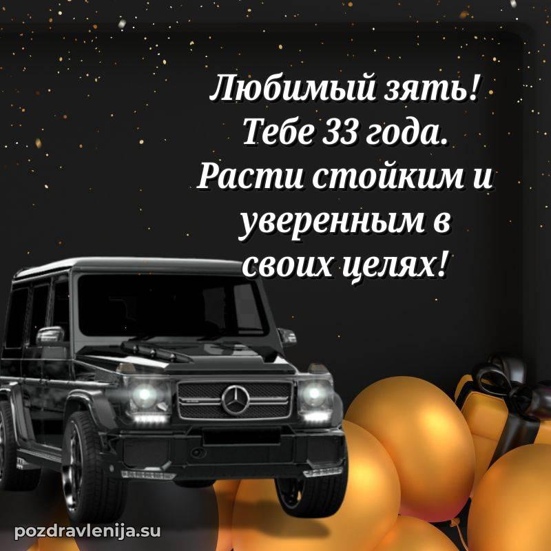 Зять, с днём рождения тебя! В твои 33 года ты показал себя как надёжный человек. Желаем тебе крепости духа, здоровья на долгие годы и успехов во всех начинаниях. Пусть твой дом будет полон смеха, а сердце – тепла. Мы ценим тебя!