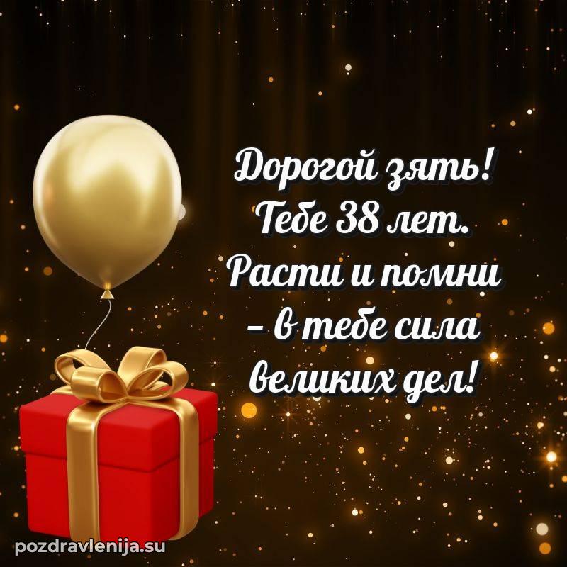 Зять, с днём рождения тебя! В твои 38 лет ты показал себя как надёжный человек. Желаем тебе крепости духа, здоровья на долгие годы и успехов во всех начинаниях. Пусть твой дом будет полон смеха, а сердце – тепла. Мы ценим тебя!