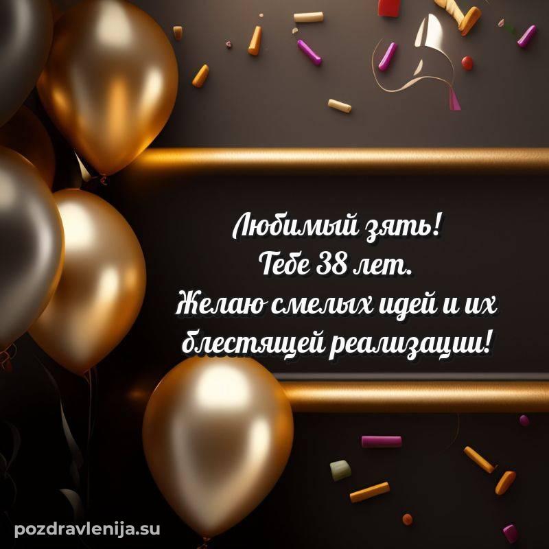 Зять, от всей души поздравляю! Желаю тебе крепкого здоровья, успехов на работе и счастья в личной жизни. Пусть каждый день будет наполнен положительными эмоциями. Пусть 38 лет принесут тебе радость и удачу!
