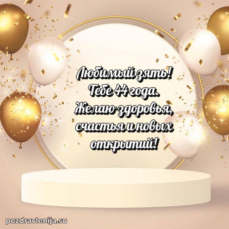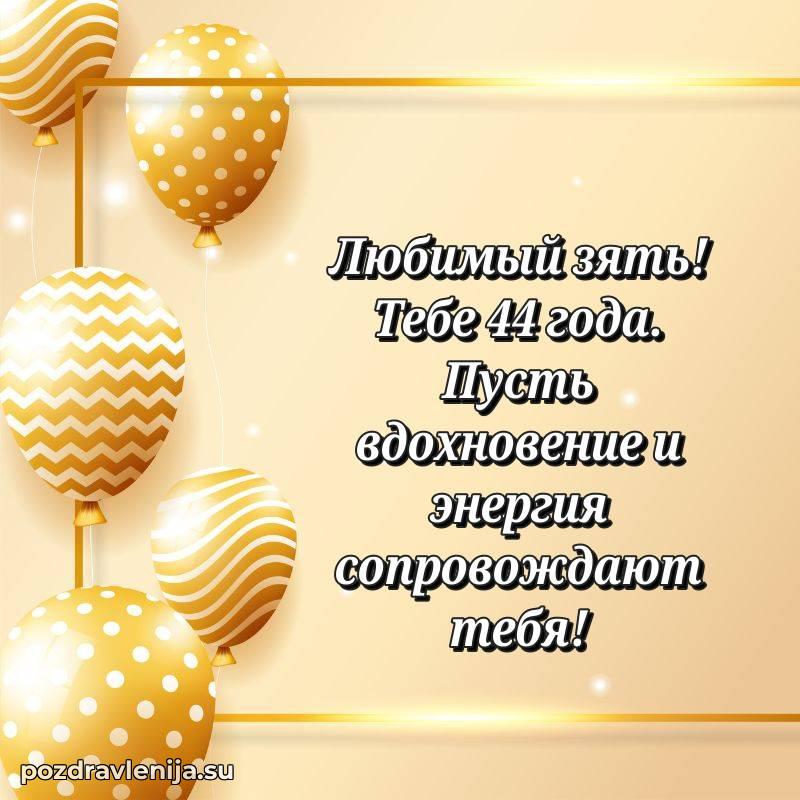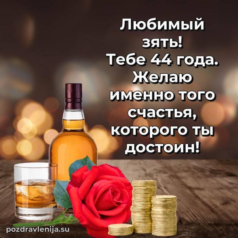 Зять, с днем рождения! Пусть жизнь радует тебя приятными сюрпризами, здоровье будет крепким, а в делах всегда сопутствует удача. Желаю тебе гармонии и достатка. За твои 44 года, полные энергии!