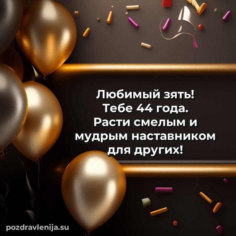 Зять, от души поздравляю! Желаю тебе счастья, здоровья и удачи во всех делах. Пусть каждый день будет наполнен теплом и радостью, а близкие поддерживают тебя. Пусть 44 года принесут новые достижения!