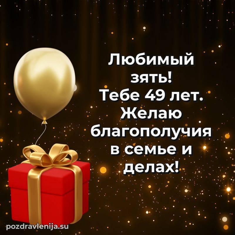 Зять, от души поздравляю! Желаю тебе счастья, здоровья и стабильности. Пусть каждый день будет наполнен теплом и радостью, а близкие всегда поддерживают. Пусть 49 лет станут временем новых свершений!